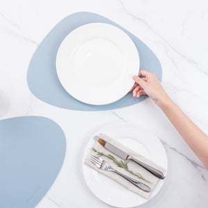EGG-SHAPED LIGHT BLUE VINYL PLACEMAT - EMBOSSED