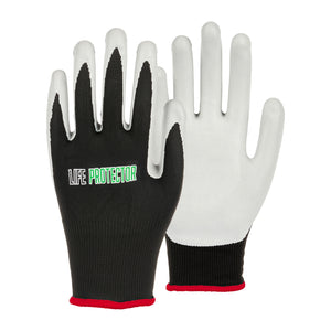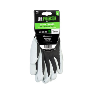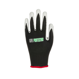 Optimize your work efficiency with our Life Protector Black Nylon Small Work Gloves. Featuring a durable nitrile coating, these heavy-duty gloves prevent oil and grease from making contact with your skin. With innovative foam technology, these breathable black work gloves keep hands cool and prevent sweating during long hours of use. The nylon lining of these protective gloves ensures comfort throughout extended wear. With a 13-gauge thickness, these mechanic gloves provide an added layer of protection in tough working conditions. Ideal for mechanical work, these black hand gloves are perfect for engine repairs, equipment maintenance, and workshop projects. Designed for convenience, these black gloves are hand washable for easy cleaning and upkeep. The sleek black finish of these work gloves helps to conceal dirt and wear, making them an excellent choice for demanding warehouse environments. Measuring 9 inches in length by 3.75 inches in width, these hand gloves offer a snug and secure fit. Each order includes 1 pair of small work gloves.