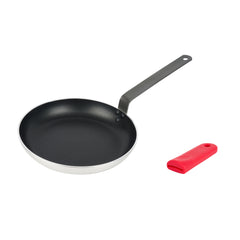 Experience ultimate convenience with our Bundle: Met Lux 1 Aluminum 11" Induction Ready Fry Pan with 1 Red Silicone Pan Handle Sleeve. Designed with a non-stick surface, this aluminum fry pan ensures effortless flipping and sliding of pancakes and omelets. The built-in stainless steel bottom plate of this frying pan is compatible with induction cooktops for efficient and versatile cooking. Crafted from heavy-duty aluminum, this saute pan offers long-lasting durability and even heat distribution throughout your cooking process. The triple-riveted handle of this skillet pan provides a secure connection and a firm grip, enhancing control while you cook. This aluminum pan is oven-safe and compatible with ceramic and electric cooktops, giving you a range of cooking options. For optimal performance, hand washing this induction frying pan is recommended. The ergonomic handle of this cooking pan features a built-in hanging hole for convenient storage and organization in your kitchen. With heat resistance up to 450F, this pan handle sleeve ensures comfortable handling of hot pans. This removable handle sleeve has molded indentations and ensures a secure and comfortable grip. The removable design of this silicone pan handle sleeve allows for easy switching between pans, saving you time and effort. Measuring 20.28 inches in length by 11 inches in width by 5.12 inches in height, this kitchen skillet provides ample space for a variety of dishes. Each order includes 1 pan and 1 sleeve.