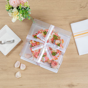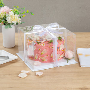 Every order includes 10 bases, 10 lids, 10 plastic containers, and ribbon, providing you with all the essentials to easily build your cake boxes. Conveniently package all types of baked goods for special occasions.