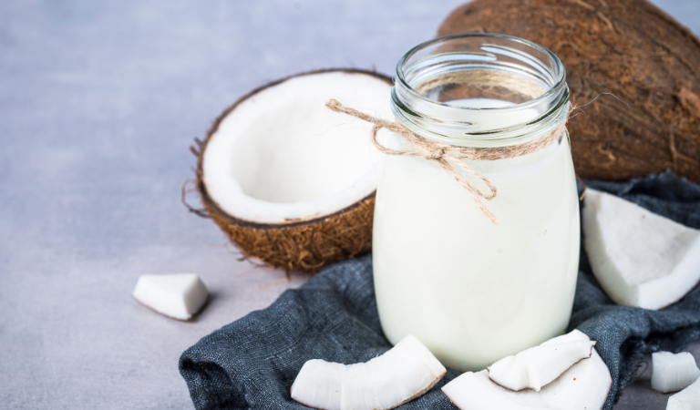 Coconut milk is commonly used in Southeast Asian and Indian cuisine. It's served as a beverage and used in numerous sweet and savory recipes. Coconut milk has a thick, creamy texture and sweet but subtle coconut flavor. It is made from water and coconut flesh. This plant-based milk alternative is low in protein, calories, and contains almost as much saturated fat as whole milk.