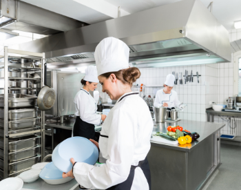 Consider the social distancing standards that are in place in your state. When staffing your ghost kitchen, it is best to reduce the number of employees actively prepping foods in the kitchen at the same time. Keeping only the essential amount of employees in a common space helps lower the spread of viruses and bacteria. Virtual kitchens are built to take advantage of the extra space that removing a dining area leaves in your establishment, which allows employees to easily maintain distance between themselves.
