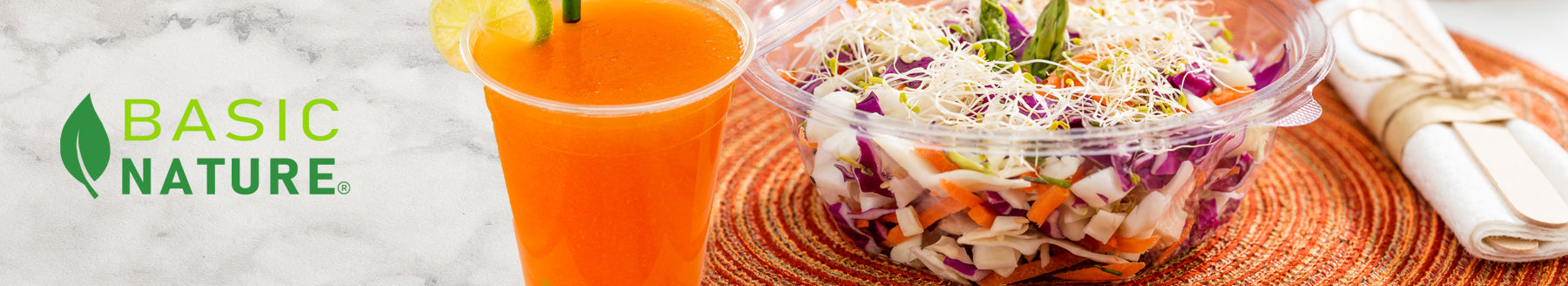 Easily bring an eco-friendly touch to every meal or drink served at your foodservice establishment with our wide selection of Basic Nature supplies. From compostable cutlery sets to drinking straws, our durable restaurant supplies provide you with an easy way to make connections with customers who are looking for ways to reduce their carbon footprint. Our sauce cups, drinking cups, and take out containers also have coordinating lids available, providing patrons with a mess-free way to take their orders on the go.