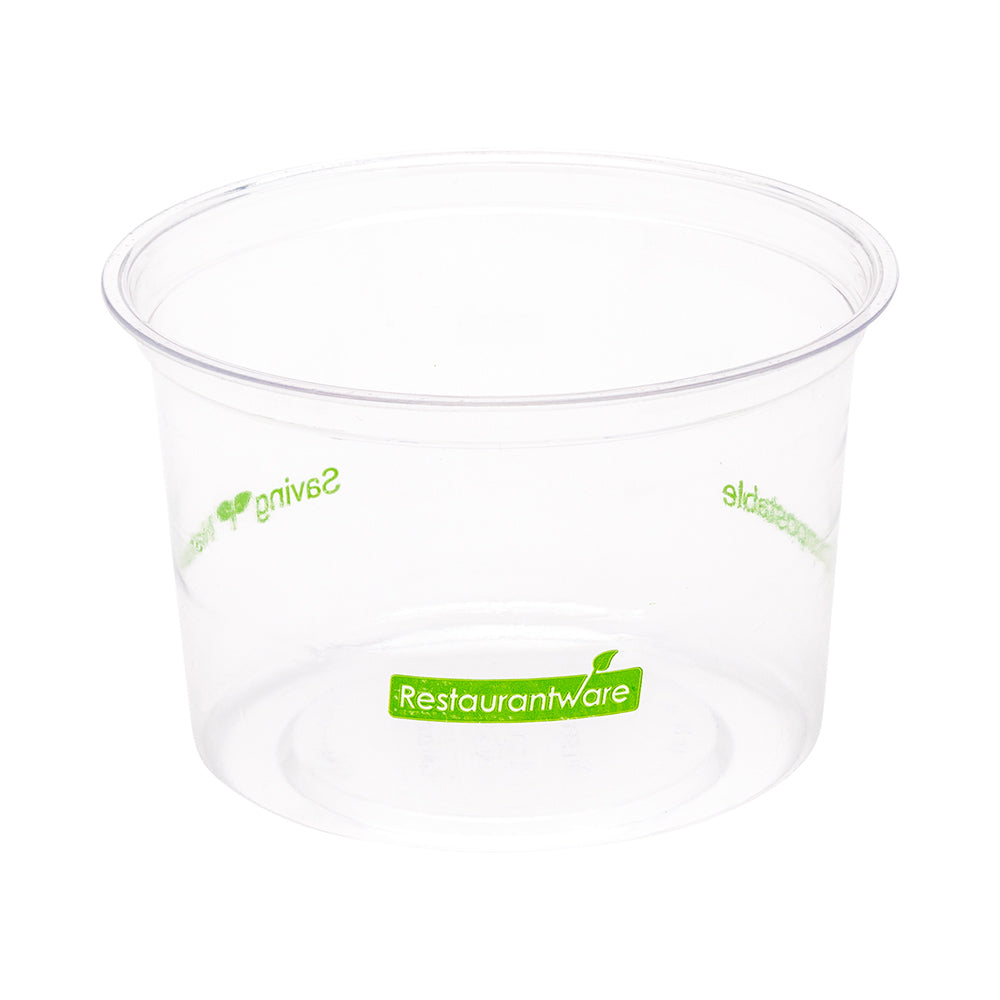 Basic Nature 16 oz Round Clear PLA Plastic To Go Deli Container - Compostable - 4 3/4" x 4 3/4" x 3" - 500 count box4 3/4" x 4 3/4" x 3"RWP0180C