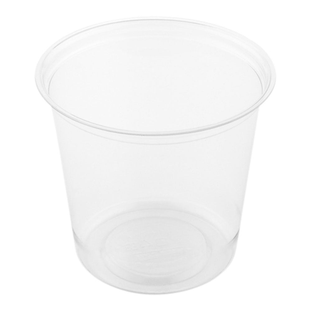 Basic Nature 8 oz Round Clear PLA Plastic To Go Deli Container - Compostable - 4 3/4" x 4 3/4" x 1 3/4" - 500 count box4 3/4" x 4 3/4" x 1 3/4"RWP0178C