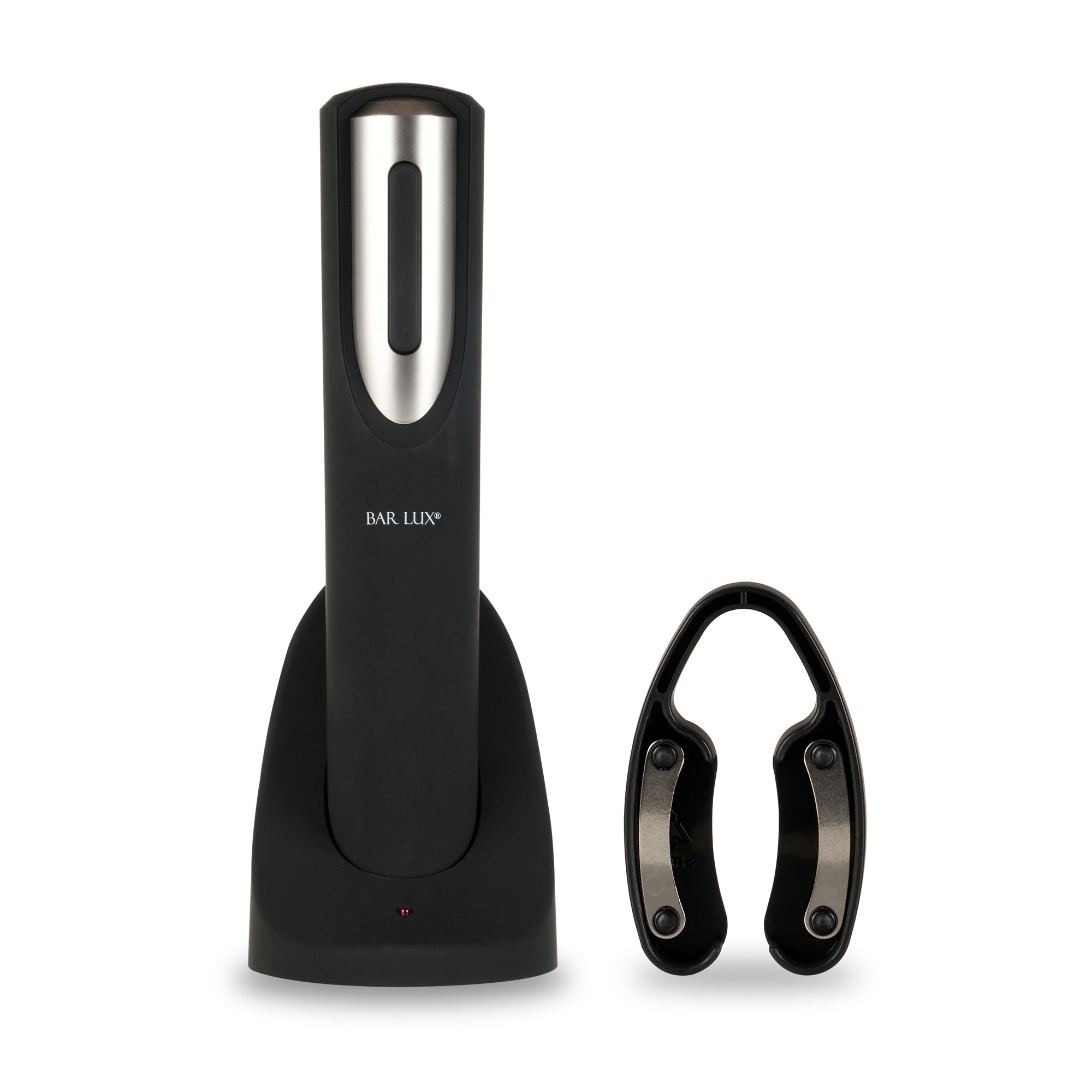 Bar Lux Black and Silver Electric Wine Opener - with Charging Base and Wine Foil Cutter - 1 count box4 1/2" x 4" x 11 1/2"RWT1548B