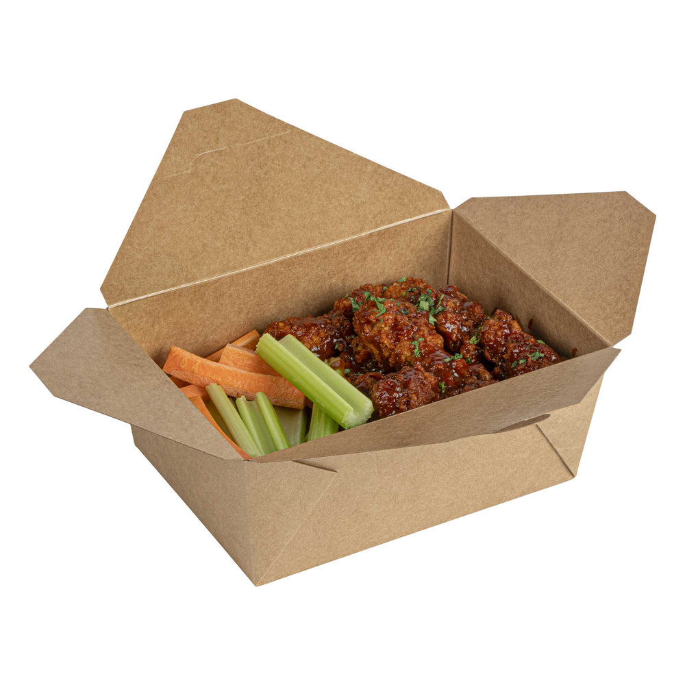 Bio Tek 98 oz Rectangle Kraft Paper #4 Bio Box Take Out Container - 8 1/2" x 6 1/4" x 3 1/2" - 200 count box8 1/2" x 6 1/4" x 3 1/2"RWA0148