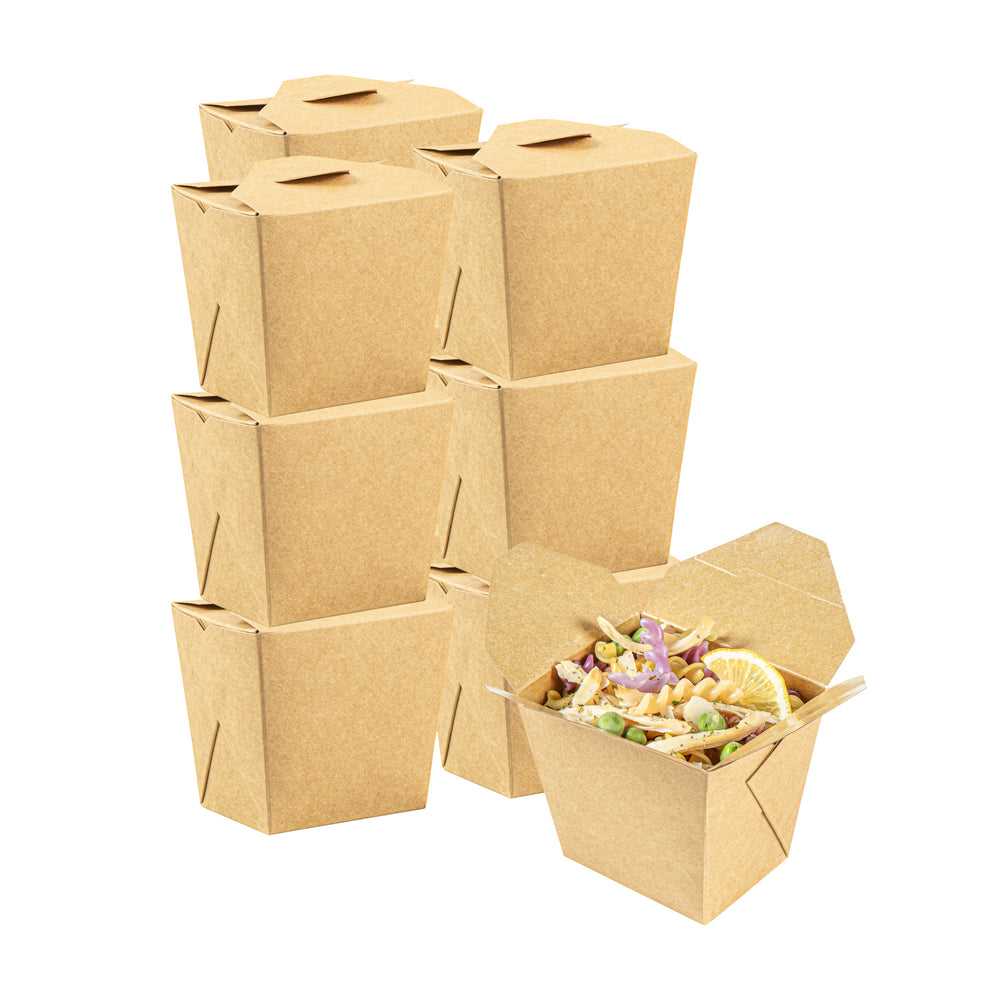Bio Tek 16 oz Square Kraft Paper Noodle Take Out Container - 3 1/2" x 3" x 3 1/4" - 200 count box3 1/2" x 3" x 3 1/4"RWA0159