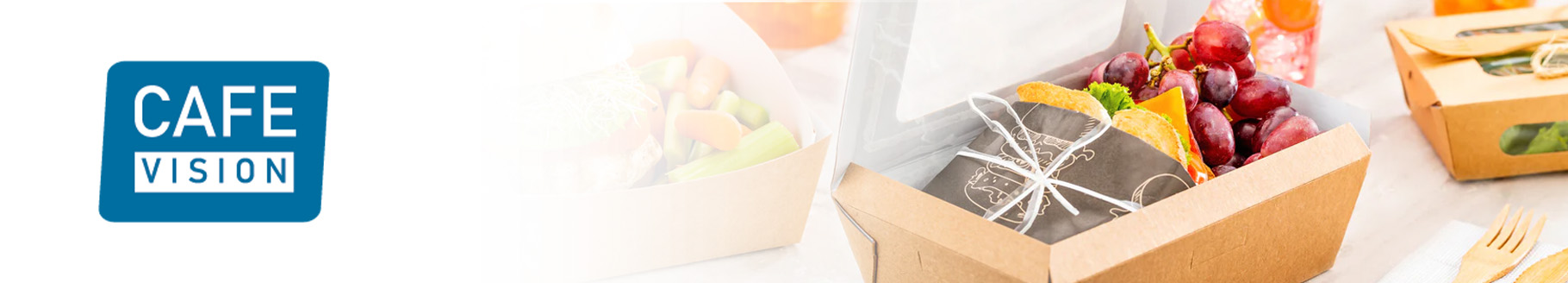 Perfect for any foodservice establishment, our Cafe Vision to go boxes are easy to fold and assemble during busy shifts. Our collection of takeout containers are made in a range of sizes so you can serve perfectly-sized portions to guests. Stock up on our recyclable Cafe Vision take out boxes for an eco-friendly way to package portable meals.