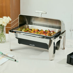 Cater Tek 9 qt Full Size Electric Chafer - Stainless Steel Roll Top Cover, Food Pan, Stand, 120V, 760W - 1 count box13 3/4" x 14 1/2" x 9"RWT2355S