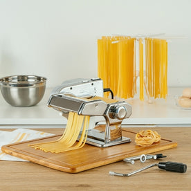 In bustling restaurant kitchens, commercial pasta machines and pasta extruders are indispensable for crafting fresh, house-made pasta that elevates any menu. Whether you're running a high-end Italian restaurant or a modern fusion eatery, these machines streamline the pasta-making process, enabling chefs to produce large volumes of noodles, ravioli, and other pasta varieties efficiently. With tools like electric pasta machines and manual pasta extruders, chefs can create customized pasta dishes that capture the essence of authentic Italian cuisine. This versatility not only enhances menu offerings but also ensures consistency in every dish served. Our range of products, including stainless steel pasta machines and high-capacity pasta extruders, is designed to meet the demands of commercial kitchens. The countertop pasta machines are perfect for space-conscious establishments, while durable pasta machines with adjustable pasta thickness features allow chefs to tailor pasta to their exact specifications. For those focused on variety, pasta machine attachments and accessories provide options to expand menu offerings effortlessly. These tools support the creation of everything from delicate angel hair to robust fettuccine, contributing to a diverse and appealing menu selection. Professional pasta extruders and heavy-duty pasta machines are ideal for bulk pasta equipment needs, ensuring that even the busiest kitchens can maintain a steady supply of fresh pasta. Implementing these pasta-making supplies in your kitchen leads to improved workflow and enhanced culinary creativity. By reducing prep time and maintaining high standards of food quality, commercial kitchens can focus on perfecting other elements of their dishes. Explore related categories like dough kneading equipment and ravioli cutters to further enhance your pasta-making capabilities. Equip your kitchen with these durable, efficient tools and keep up with the demands of modern foodservice environments.