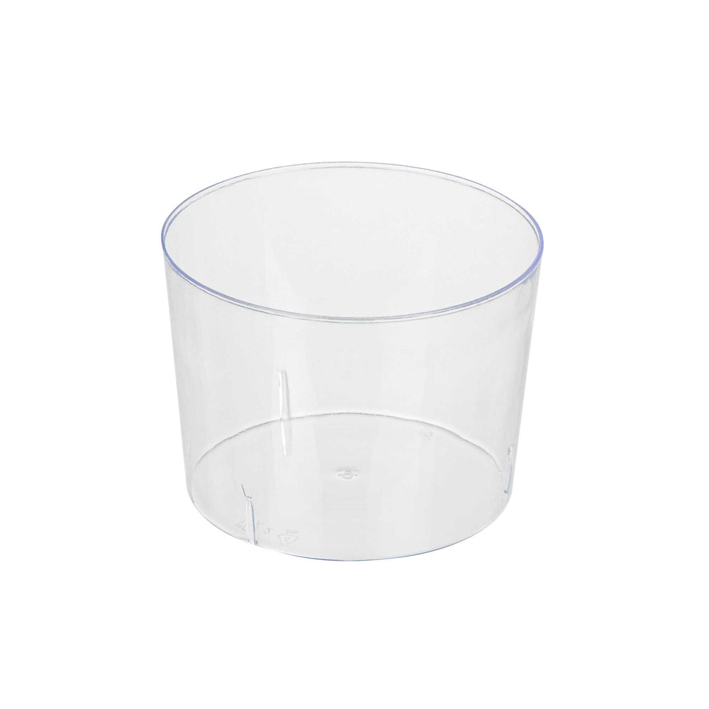 Mini Serve 9 oz Round Clear Plastic Candy and Snack Jar - with Aluminum Lid - 2 3/4" x 2 3/4" x 3 1/4" - 100 count box2 3/4" x 2 3/4" x 3 1/4"RWP0270C