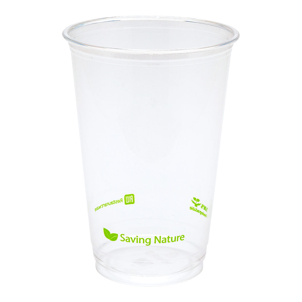 Sustain 16 oz Round Clear PLA Plastic Drinking Cup - Compostable - 3 3/4" x 3 3/4" x 4 3/4" - 1000 count box3 3/4" x 3 3/4" x 4 3/4"RWP0611C