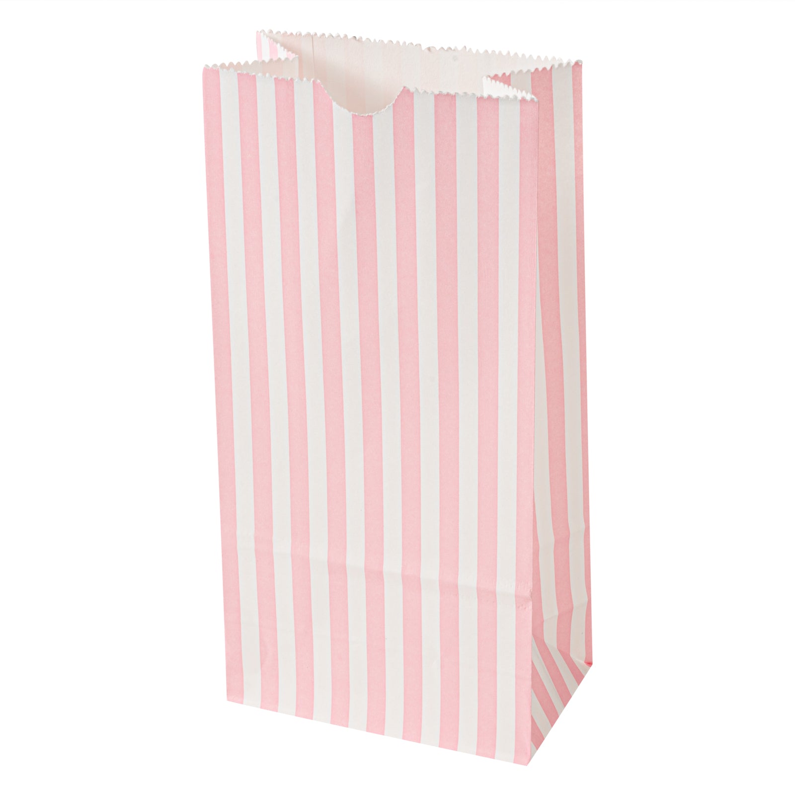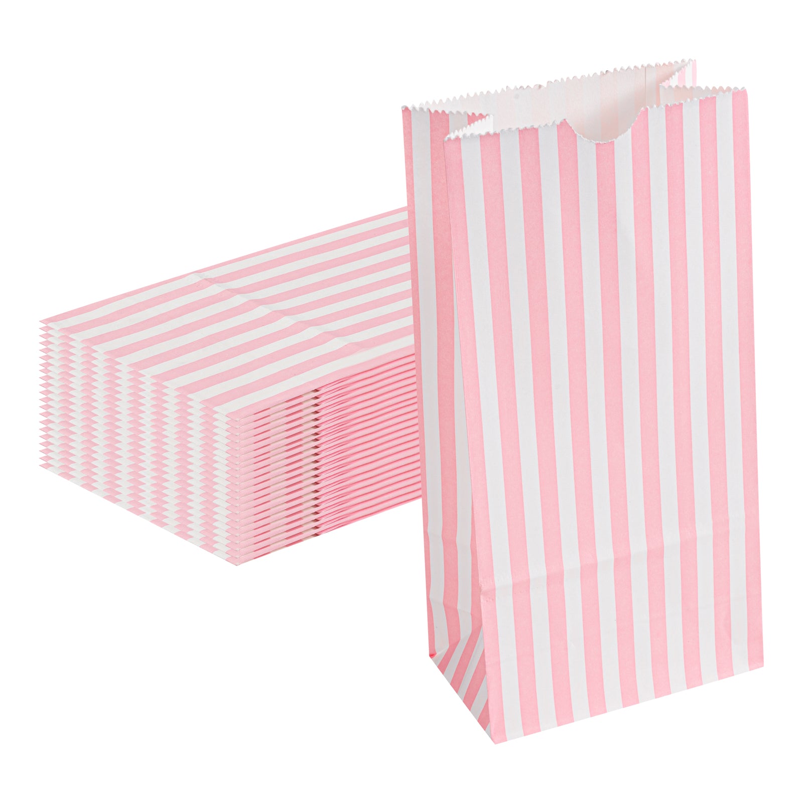 Bag Tek Pink and White Stripe Paper Bag - 2 lb - 4 1/4" x 2 1/4" x 8 1/2" - 100 count box4 1/4" x 2 1/4" x 8 3/4"RWA0839PW