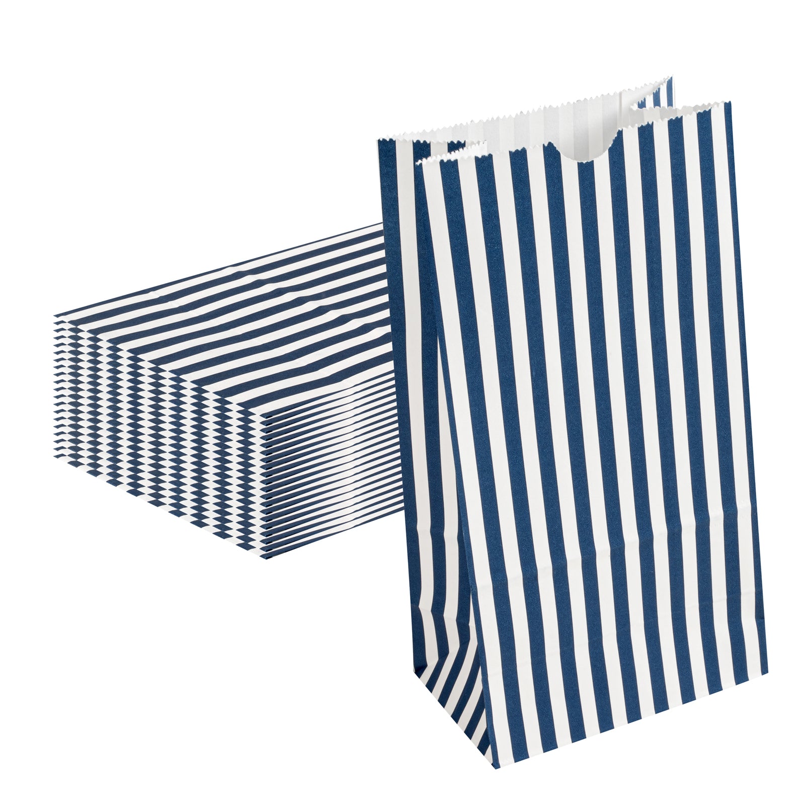 Bag Tek Blue and White Stripe Paper Bag - 4 lb - 5" x 3 1/4" x 9 1/2" - 100 count box5" x 3 1/4" x 9 1/2"RWA0840BLW