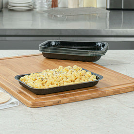Pastry Tek 32 oz Rectangle Black Paperboard Tray - Oven-Safe - 8 1/4" x 5 1/2" x 1 1/2" - 100 count box8 1/4" x 5 1/2" x 1 1/2"RWA1396B