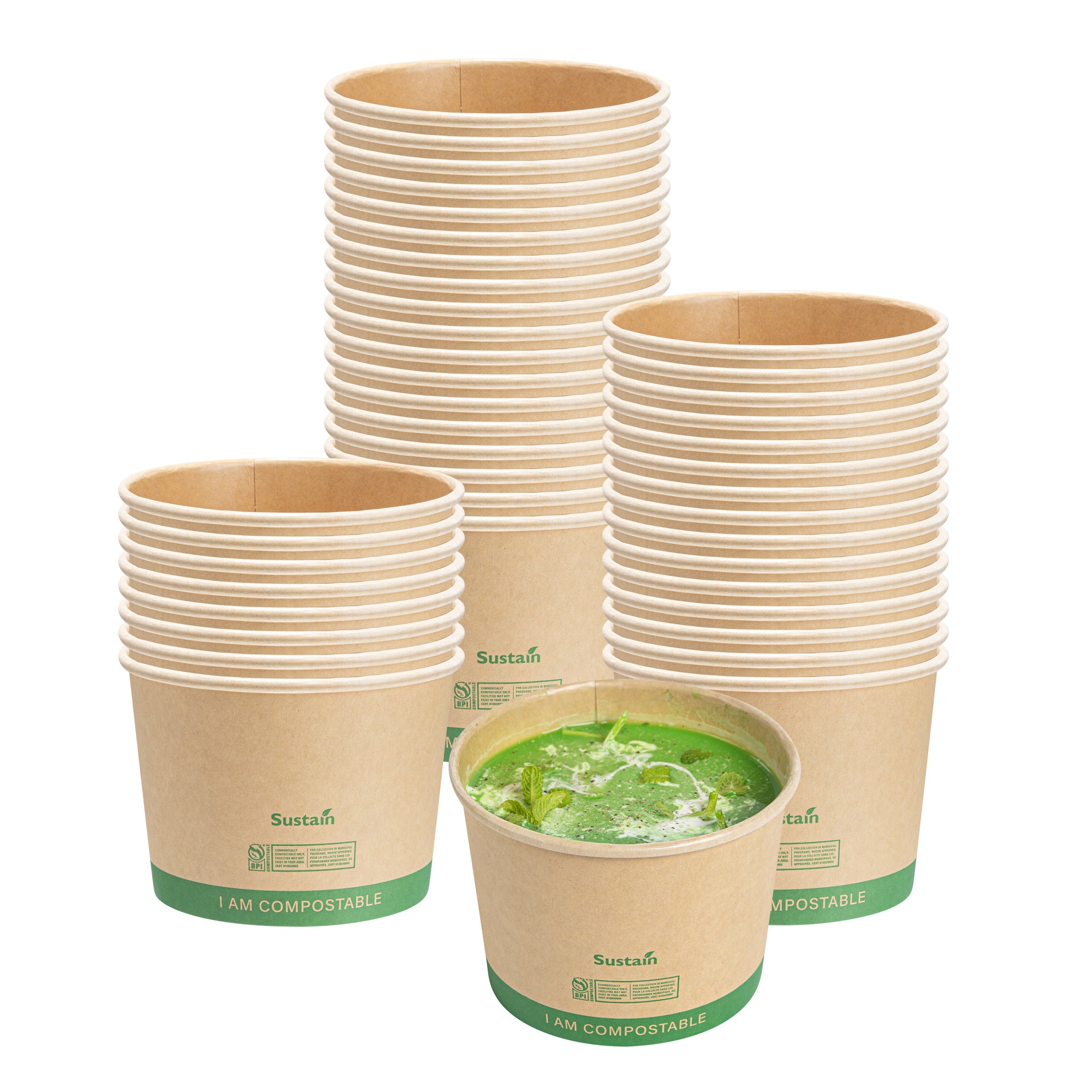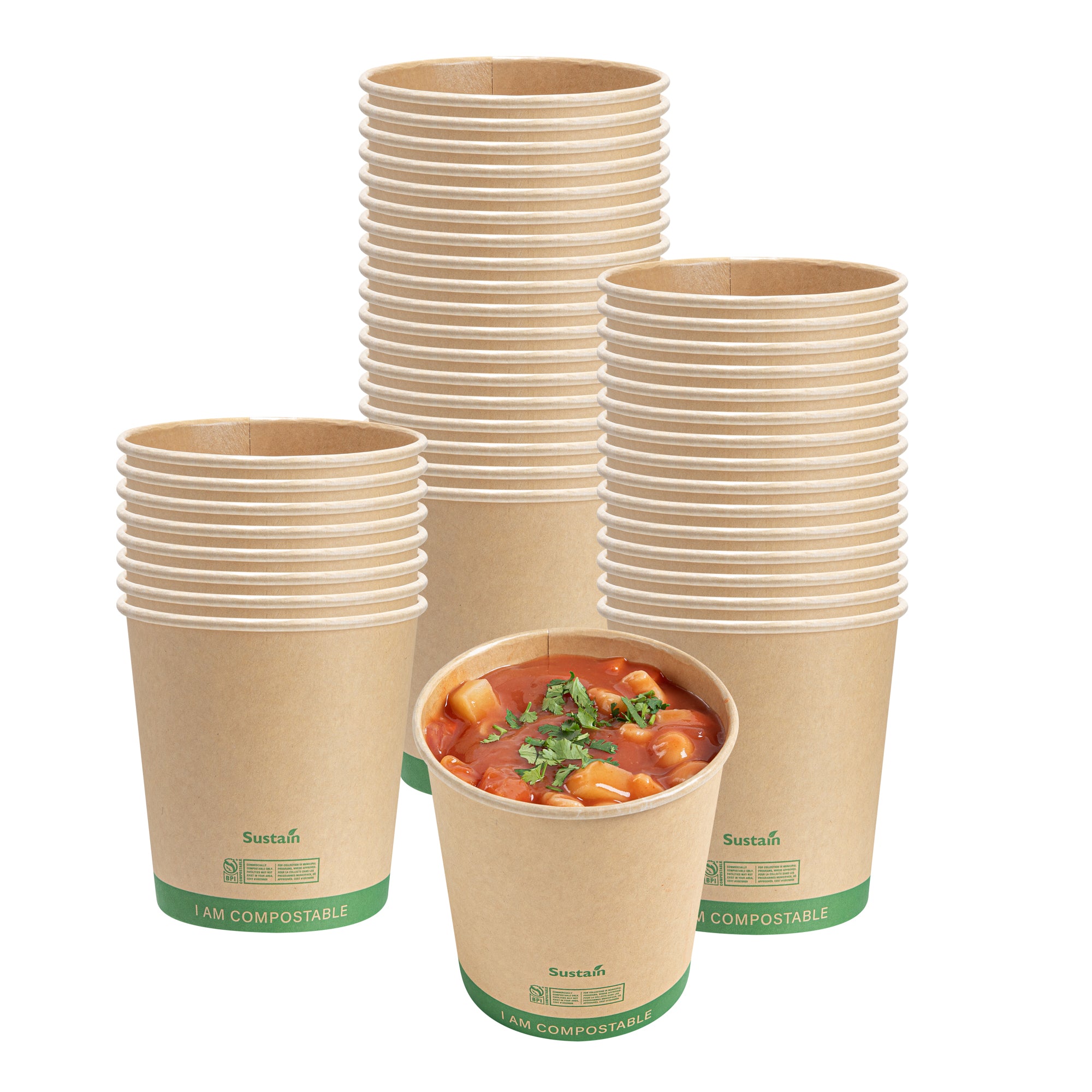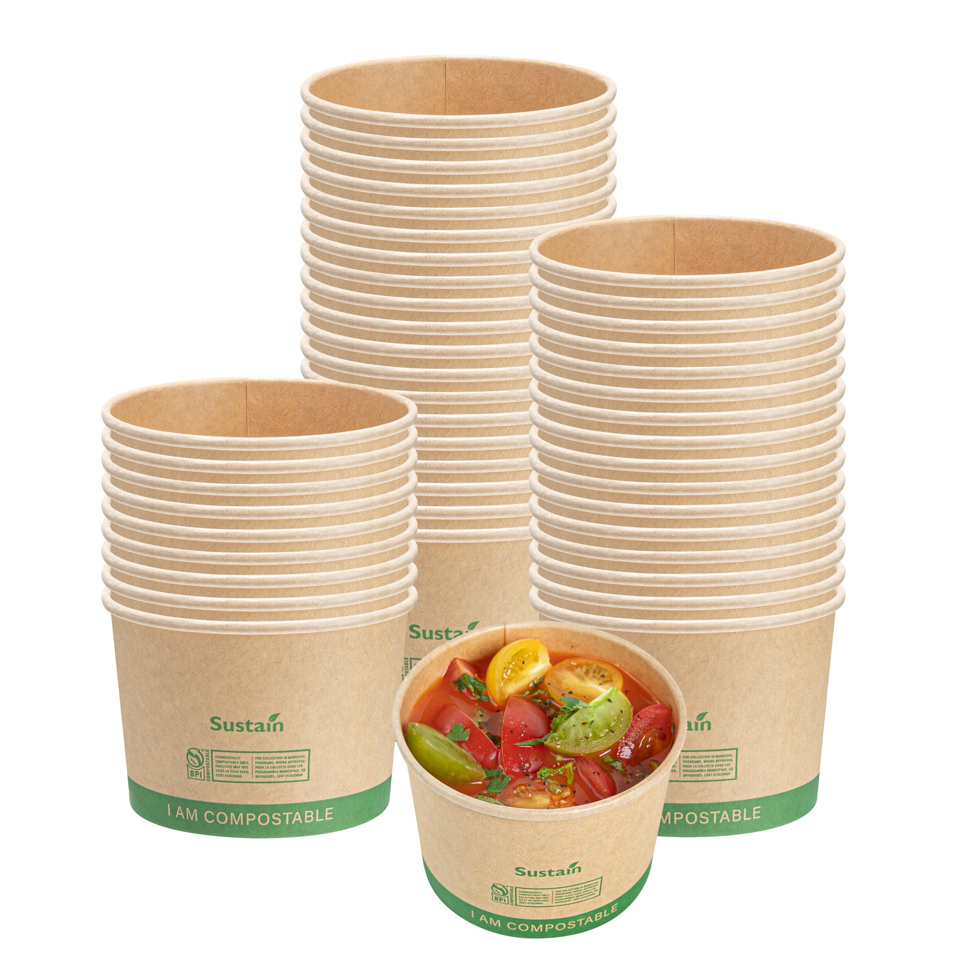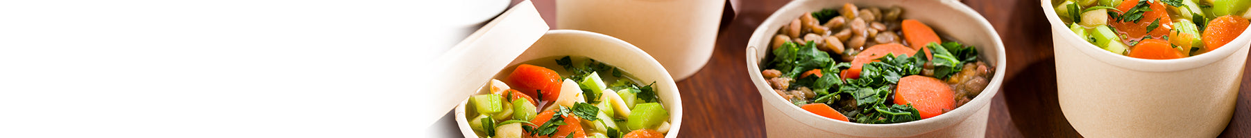 Our take out containers and lids come in elegant kraft brown and light brown hues and are sturdy enough to hold all kinds of soups. Best of all, they’re made from sustainable materials, making for a chic eco-elegant style. Our plastic soup containers are microwavable and large enough to hold hardier soups and stews. Your customers can enjoy your turkey chili, gazpacho, or crab chowder in personal 8 ounce cups, or in our family-sized 32 ounce containers.