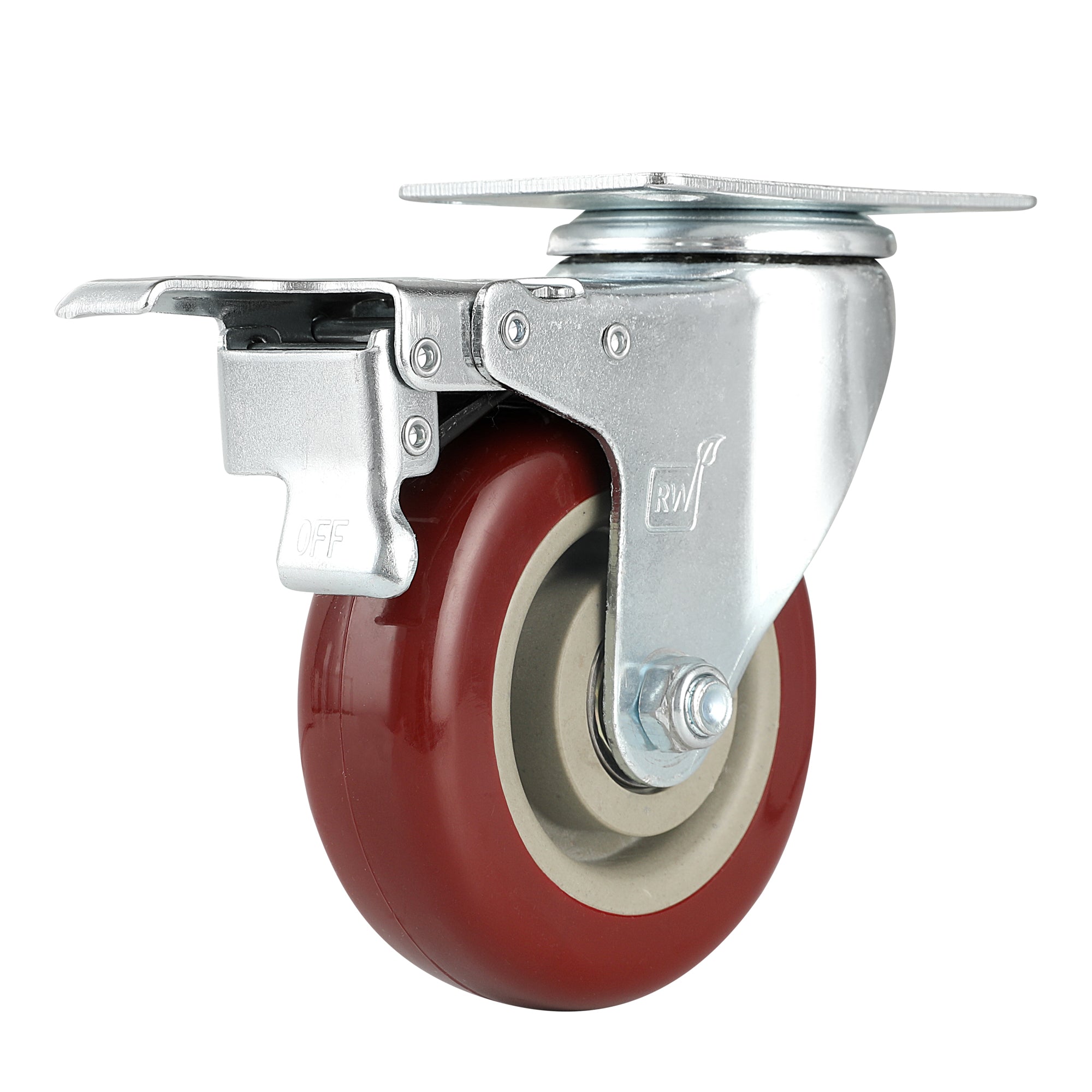 RW Hardware Red Swivel Plate Caster - with Brakes and Mounting Hardware - 4" - 4 count box4" x 1 1/4" x 5 1/4"RWT1712R