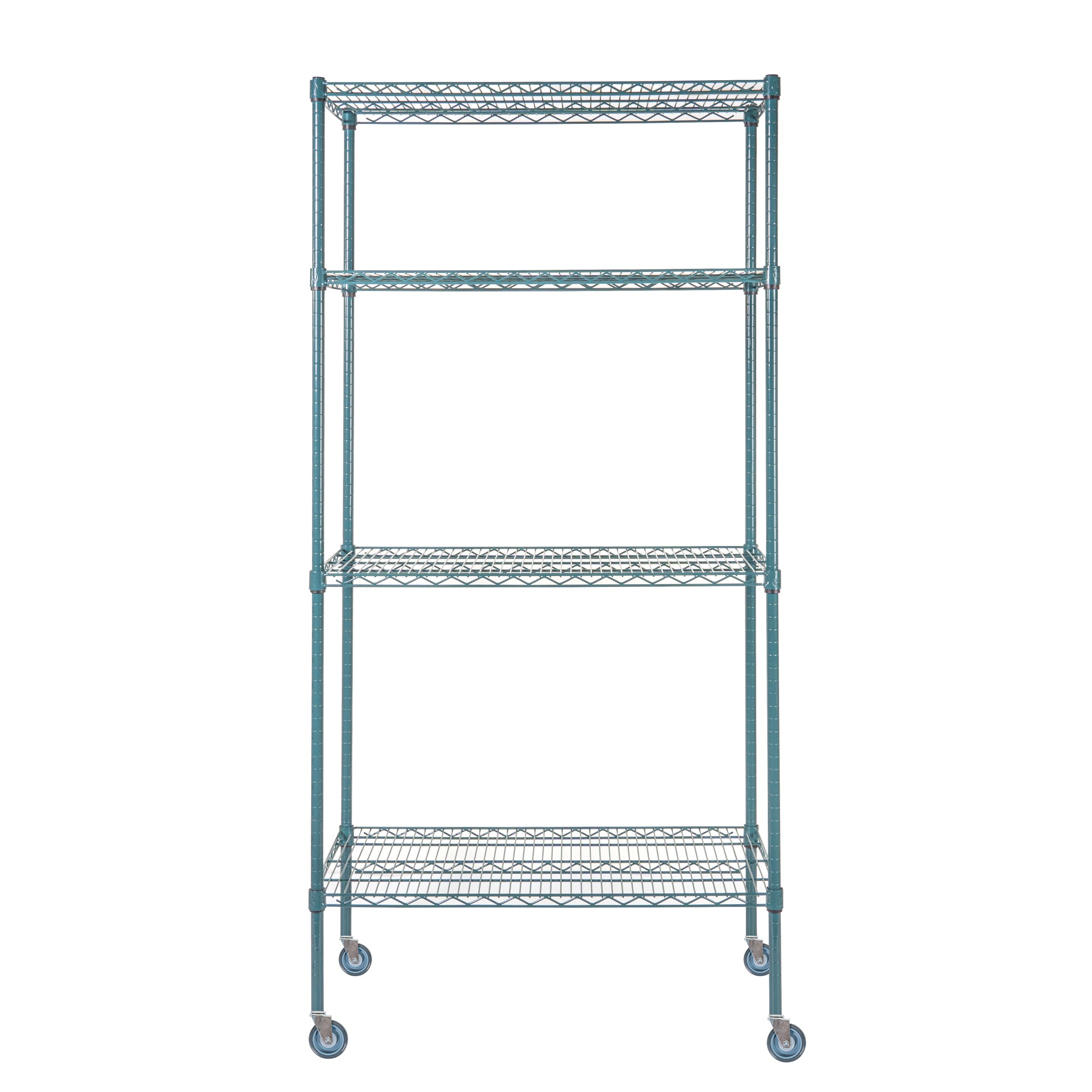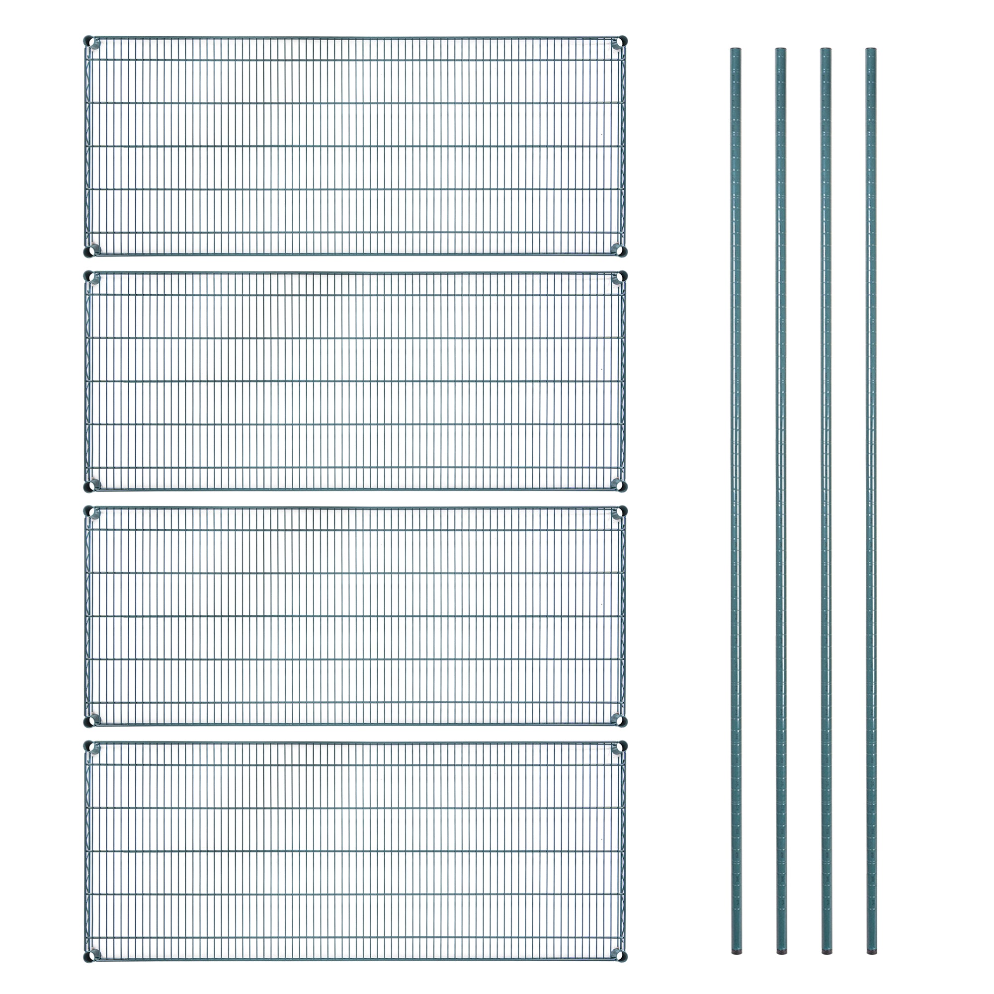 Chef 101 4-Tier NSF Green Epoxy Shelving Unit - and 24" x 36" Shelves and 74" Posts74" x 1" x 1"BNRW0777