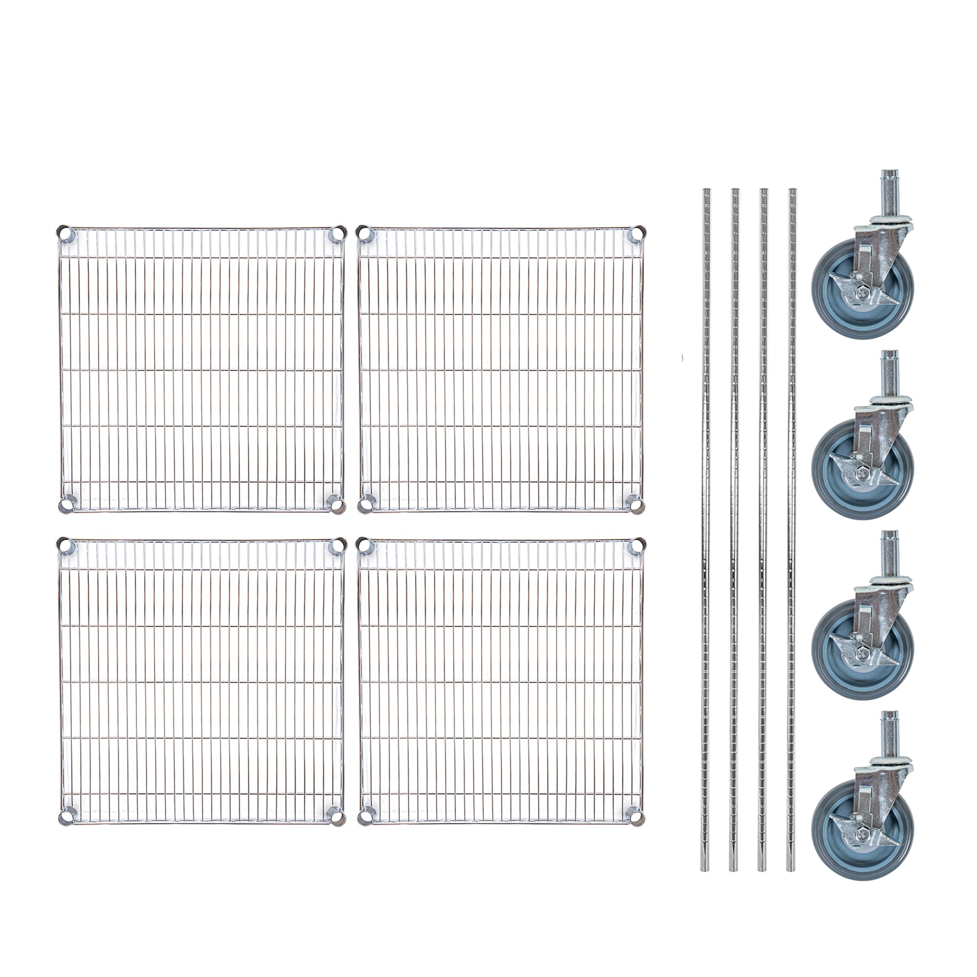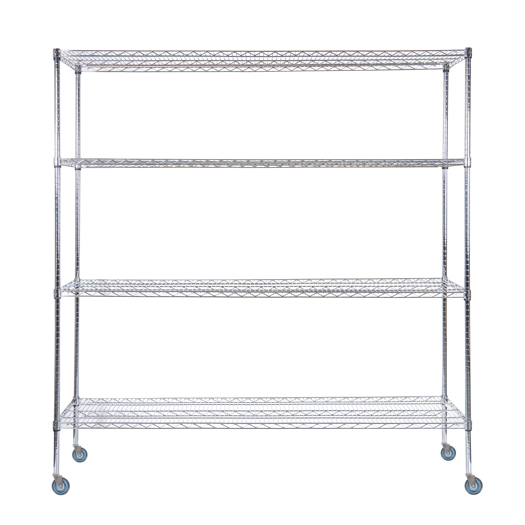 Chef 101 4-Tier NSF Chrome Shelving Unit - and 24" x 24" Shelves, 74" Posts and Casters74" x 1" x 1"BNRW0768