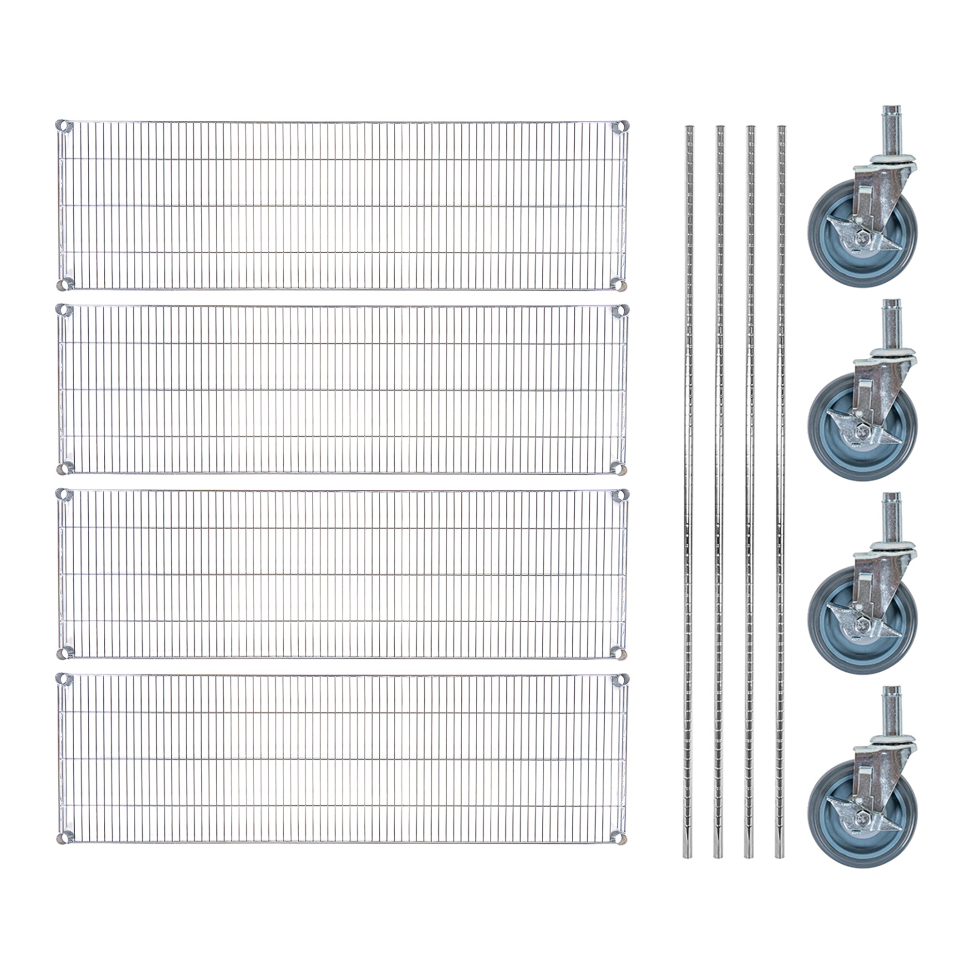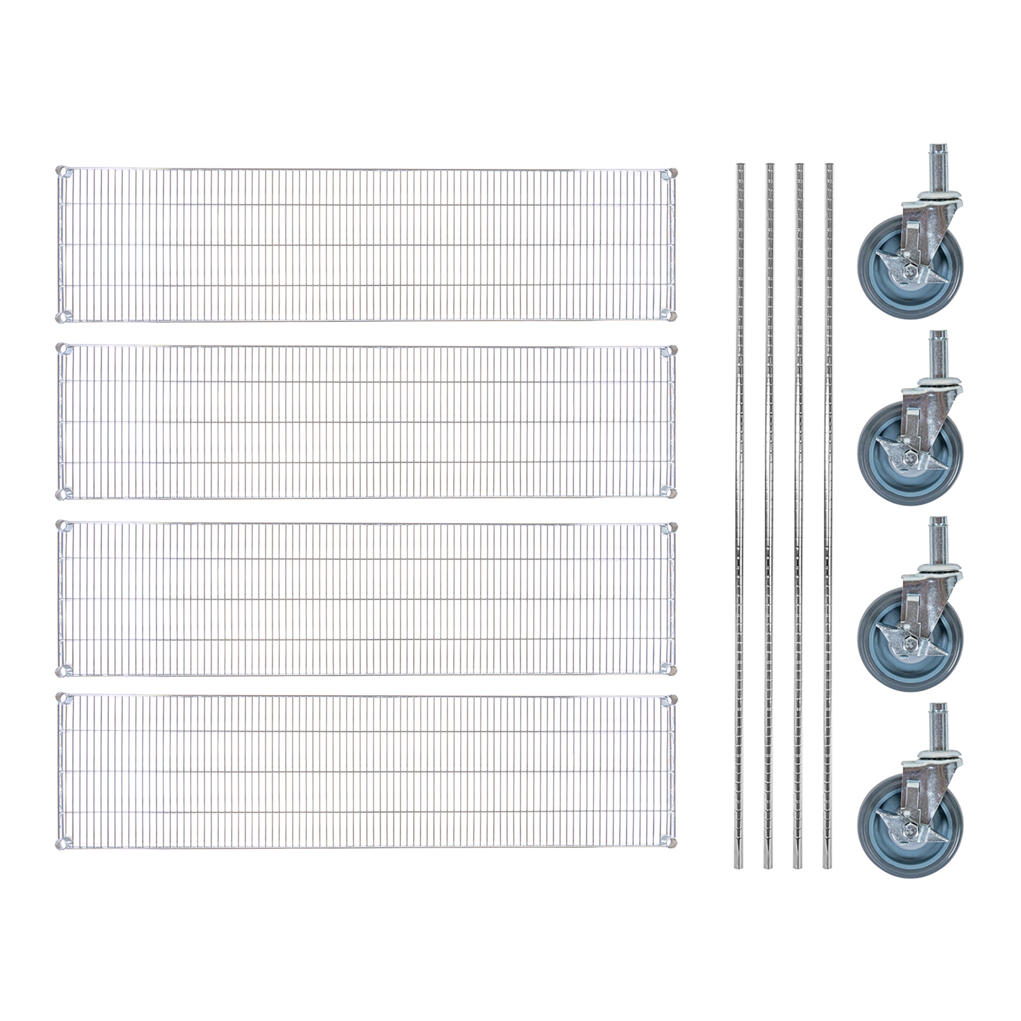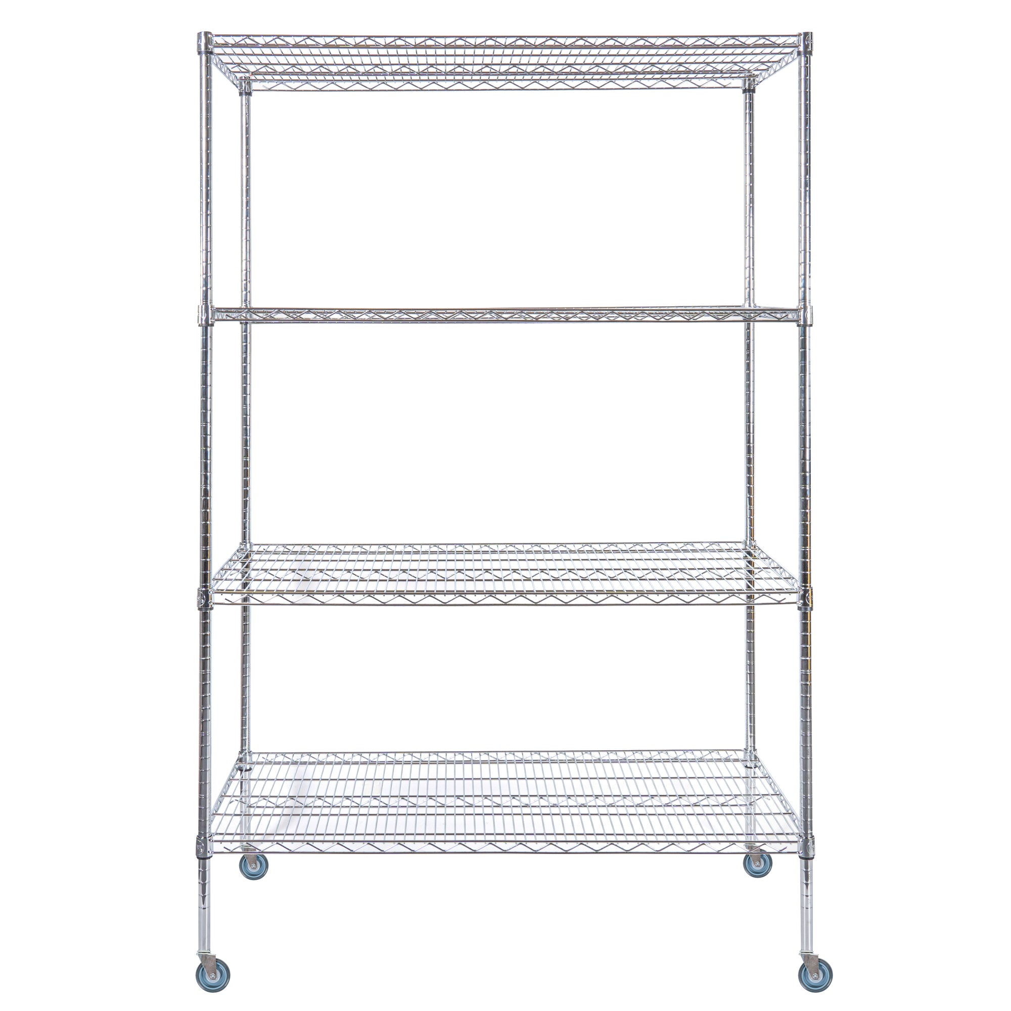 Chef 101 4-Tier NSF Chrome Shelving Unit - and 18" x 48" Shelves, 74" Posts and Casters74" x 1" x 1"BNRW0771