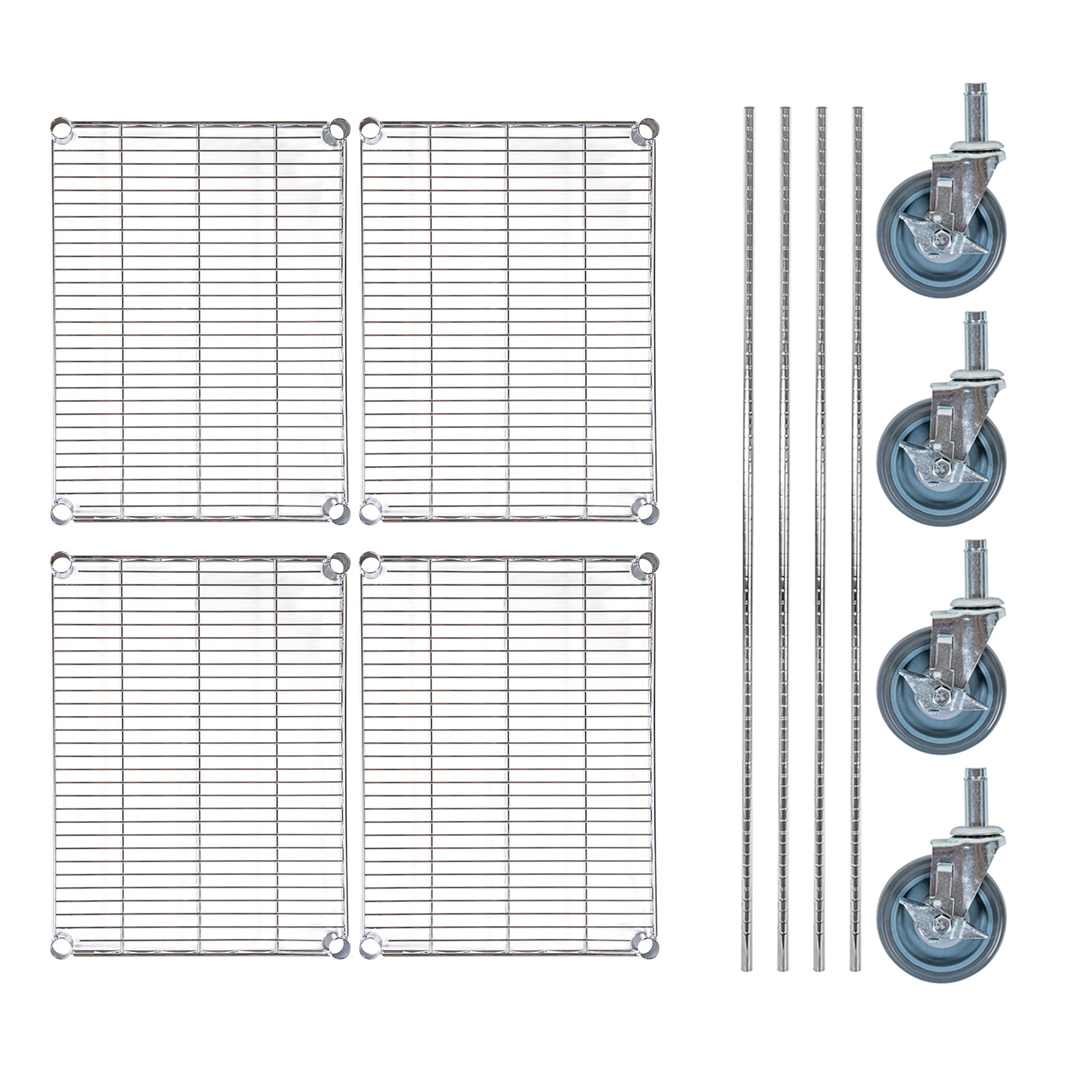 With a comprehensive assortment of sizes and styles, our wire shelving kits are an essential addition to any space demanding superior organization. From deep, multi-tiered units that can hold up to 600 pounds per shelf to compact solutions for tight spaces capable of holding up to 450 pounds per shelf, we provide the perfect shelving units for any purpose. Our wire shelving kits come in two distinct finishes: chrome plated for storage in dry environments and epoxy coated for storage in wet environments, making them suitable for any business setting. Your customers and staff will appreciate the effortless organization and accessibility these unique shelving units bring to every space. In addition to being customized to suit your storage needs, our metal shelving kits offer the flexibility to opt for caster-compatible units for easy mobility or stationary units for a stable, fixed solution, ensuring your shelving meets your specific preferences and space requirements. They are easy to assemble and rearrange, making them a practical choice for dynamic commercial environments. These units confidently hold weight, distribute it evenly, and resist rust and damage, ensuring long-term reliability.