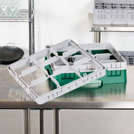 Glass racks and cup racks are essential for maintaining organization and protecting glassware in commercial kitchens, bars, and foodservice operations. Designed to support safe handling during washing, transport, and storage, these dishwasher-safe racks help streamline warewashing while reducing the risk of breakage. Whether housing delicate wine glasses or sturdy tumblers, glass racks keep items separated, stable, and ready for service. Rack extenders allow operators to adjust height clearance, making it easy to accommodate a wide range of glass sizes and styles.
