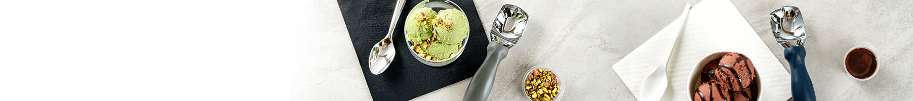 We offer scoops with non-slip rubberized grips, specifically designed for ice cream, as well as professional grade dishers with squeeze handles, ideal for not only serving ice cream, but gelato, mashed potatoes, rice, butter, steamed veggies, and other fine foods as well. Our dishers come in various serving sizes, and are marked for easy kitchen and serving organization.