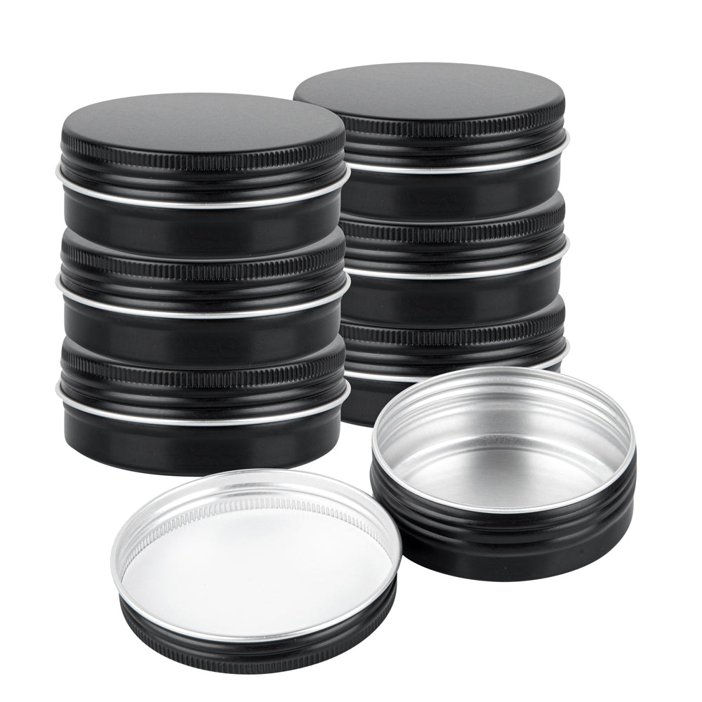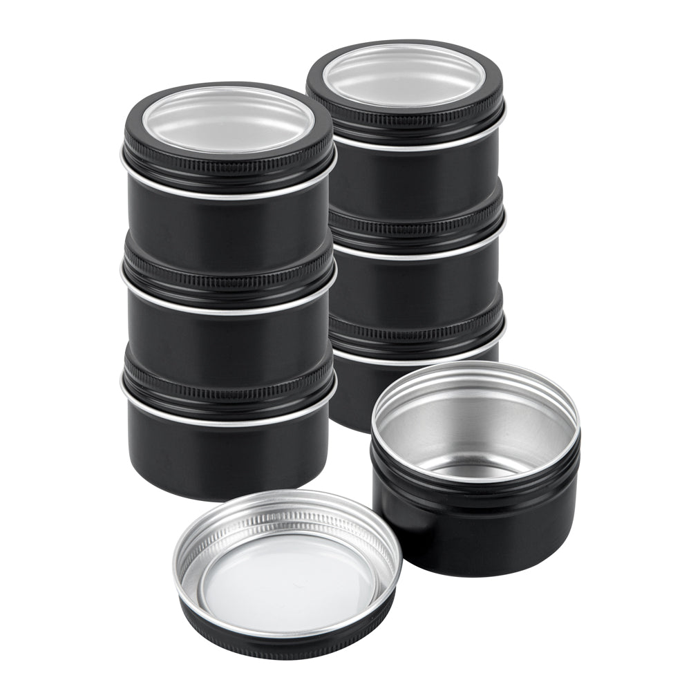 Chef 101 2 oz Round Black Tin Container - with Screw Lid - 100 count box2 3/4" x 2 3/4" x 1"RWM0165B