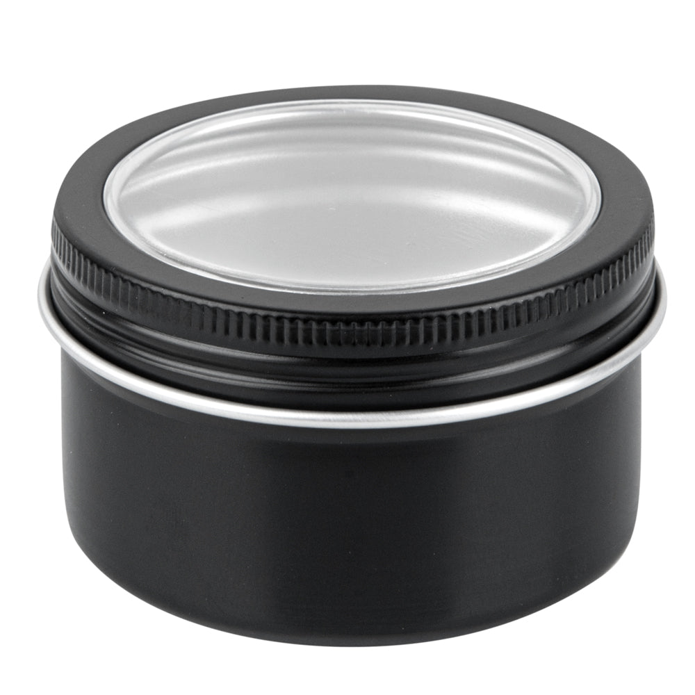 Chef 101 4 oz Round Black Tin Container - with Window Lid - 100 count box2 3/4" x 2 3/4" x 1 3/4"RWM0167B