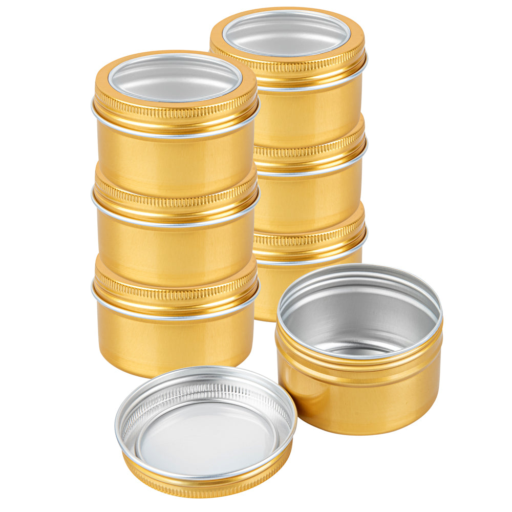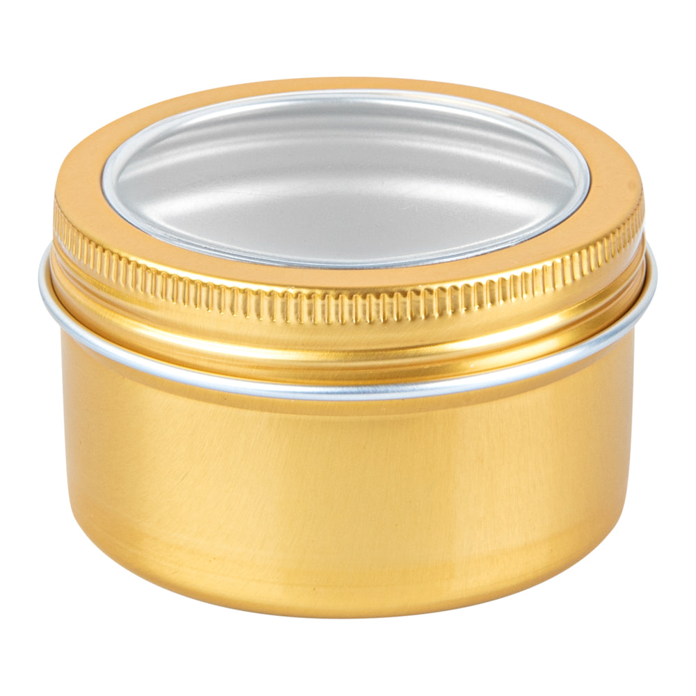Chef 101 4 oz Round Gold Tin Container - with Window Lid - 100 count box2 3/4" x 2 3/4" x 1 3/4"RWM0167GD