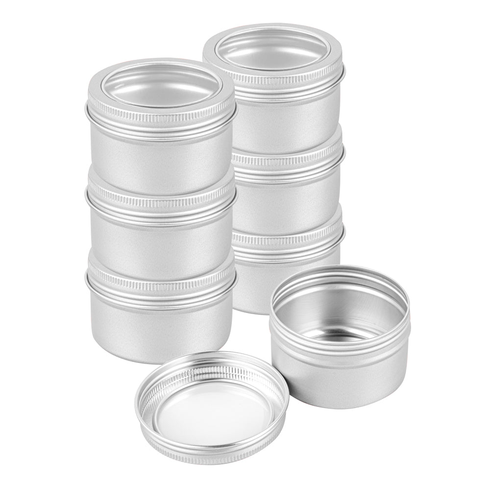 Chef 101 2 oz Round Silver Tin Container - with Screw Lid - 100 count box2 3/4" x 2 3/4" x 1"RWM0165S