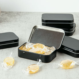 • Chef 101 4 oz Rectangle Black Tin Container - with Hinged Lid - 100 count box