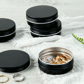 • Chef 101 2 oz Round Black Tin Container - with Screw Lid - 100 count box