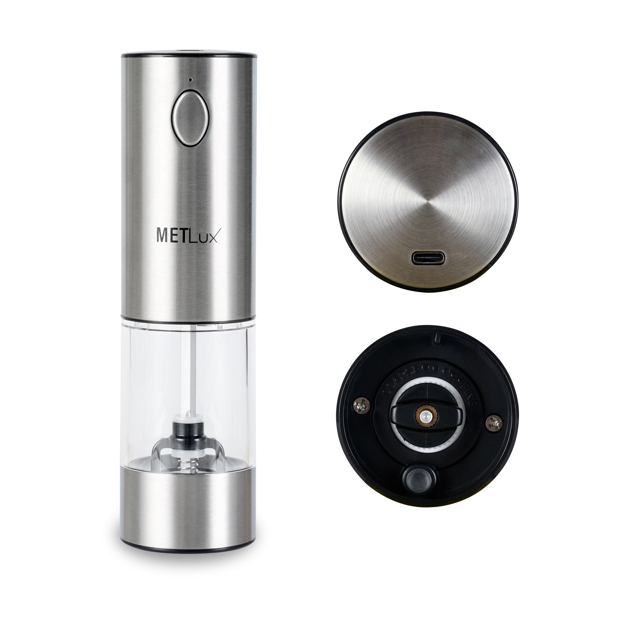 Met Lux Electric Salt or Pepper Grinder - Rechargeable, with LED Light - 2'' x 2'' x 7 1/2'' - 1 count box2" x 2" x 7 1/2"RWT1555S