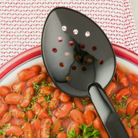 Cater Tek Black Plastic Catering Spoon - Perforated - 13" - 1 count box13" x 2 3/4" x 1"RWT0263B
