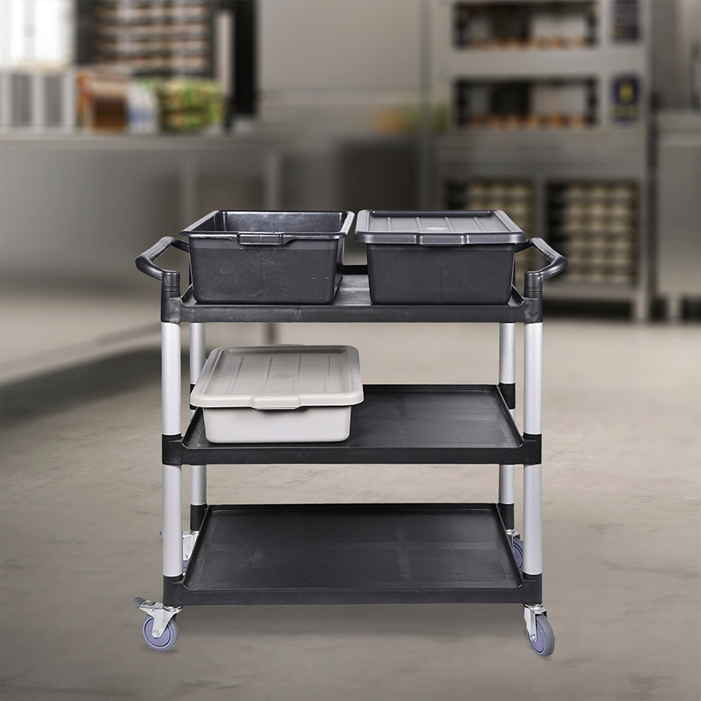 RW Clean Black Plastic Large Heavy-Duty Rolling Utility Cart - 3 Shelves - 40 1/4" x 19 3/4" x 37 3/4" - 1 count box40 1/4" x 19 3/4" x 37 3/4"RWT0477