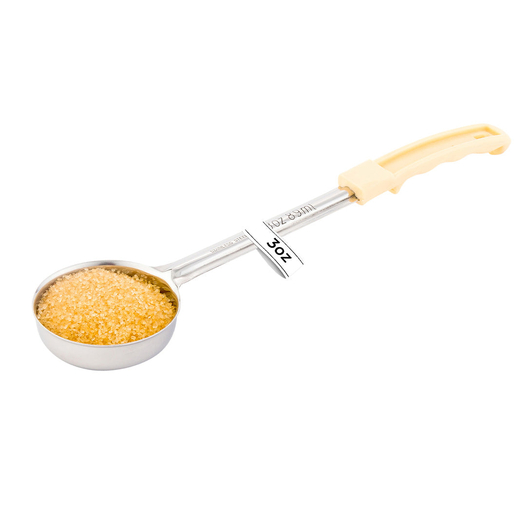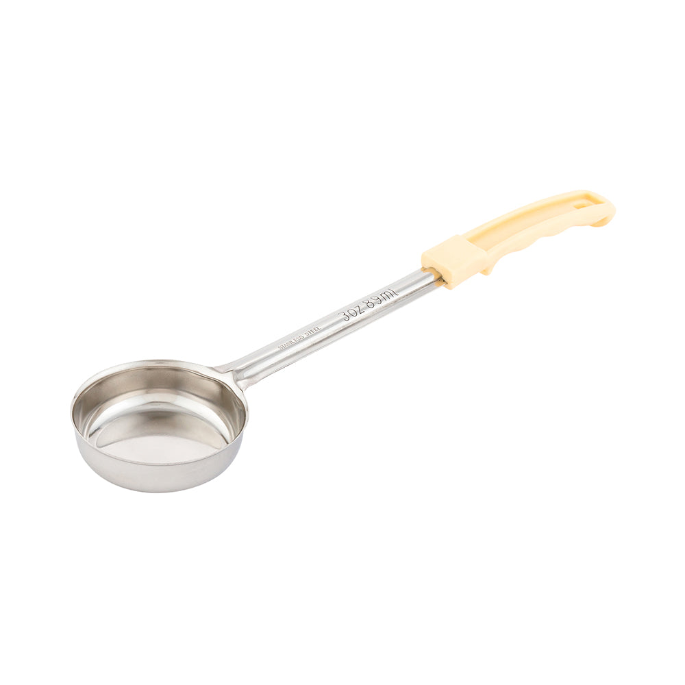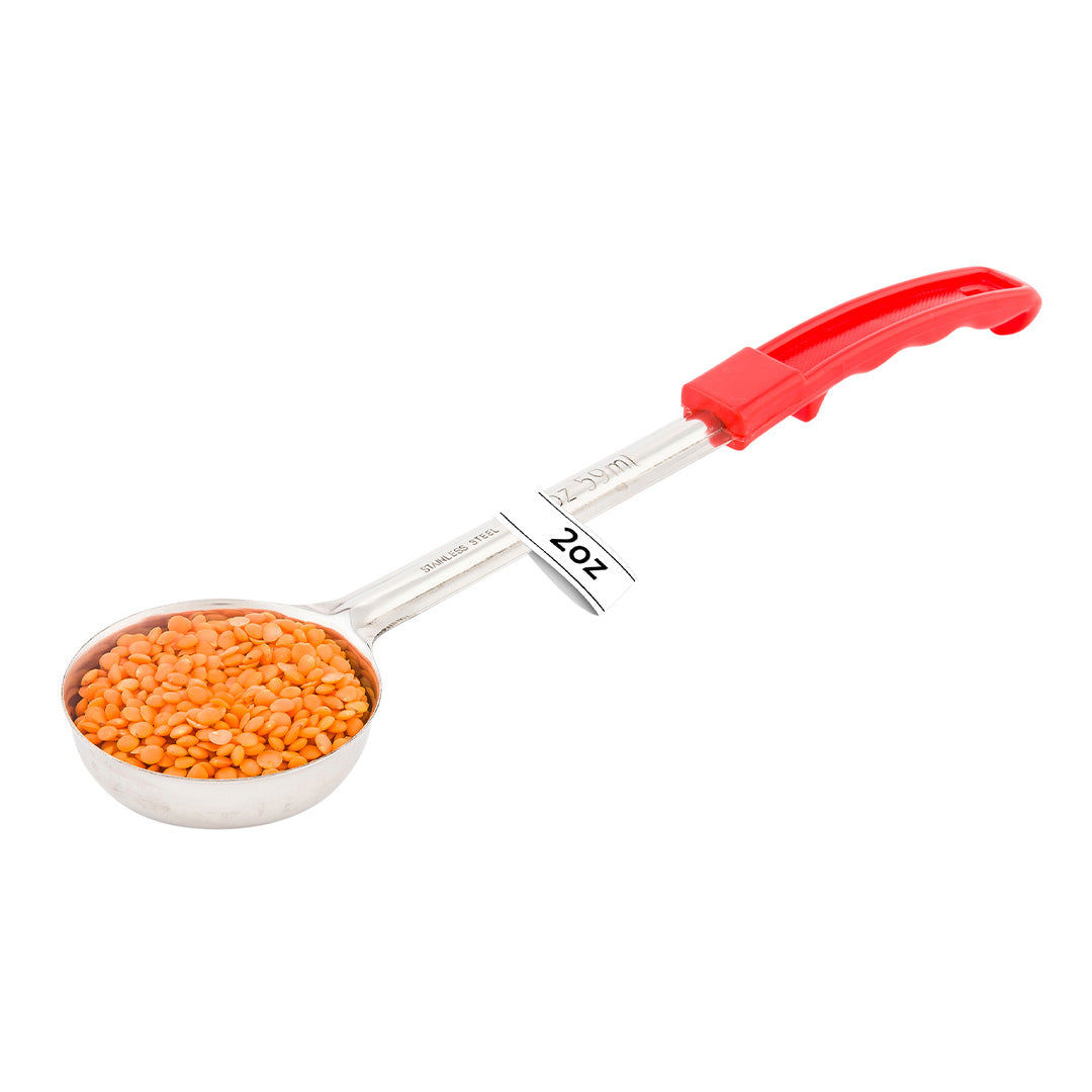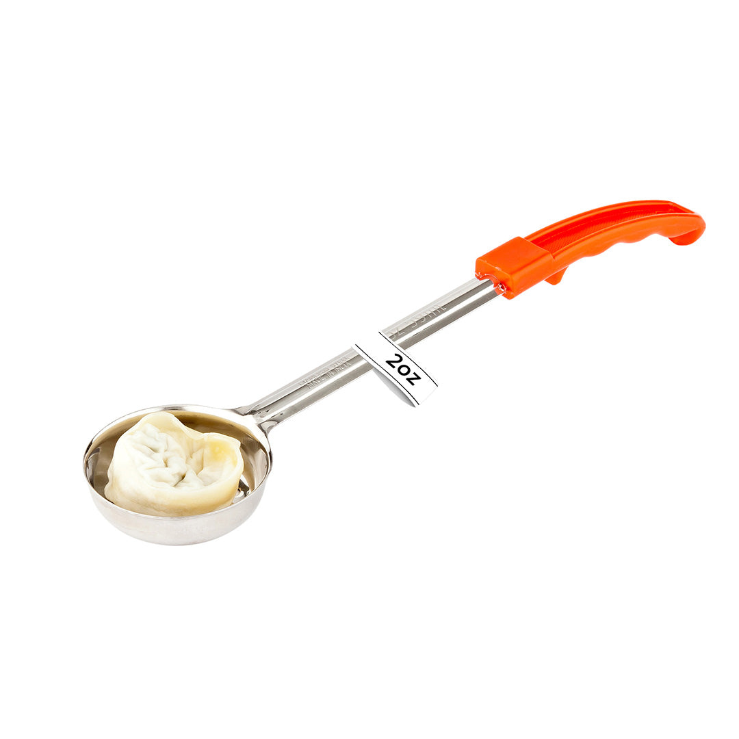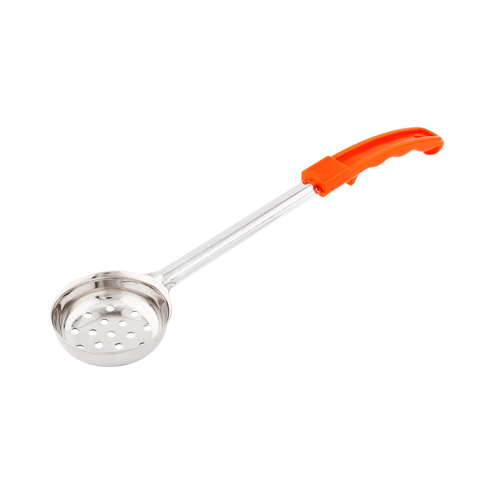 Restaurantware offers a selection of various sized spoodles and portioning spoons, available in either solid or perforated styles. All of our food service portion spoons feature color-coded, heat-resistant plastic grips for easy identification -- and to help prevent cross-contamination while preparing and plating food on the line. Â