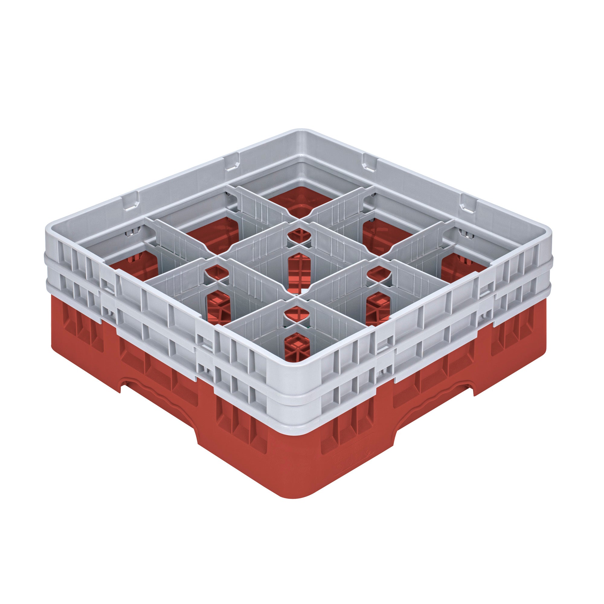 • Clean Tek Professional Red Glass Rack - 9 Compartments, 1 Full Drop and 2 Half Drop Extenders - 19 3/4" x 19 3/4" x 8 3/4" - 1 count box