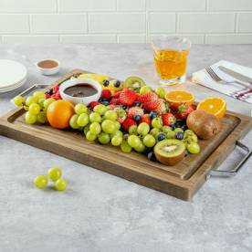 Eco Display Campagna Rectangle Natural Wood Small Serving and Cutting Board - Chrome Hardware - 21 1/2" x 12" x 1" - 1 count box21 1/2" x 12" x 1"RWB0355