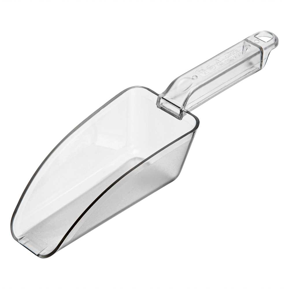 - Beveled-edge scoop provides efficient ice pickup with full bin access