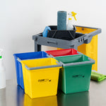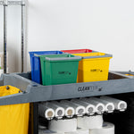 Enhance cleaning efficiency with vibrant, space-saving solutions. The RW Clean Color-Coded Plastic Cleaning Bucket features a 6-quart capacity, minimizing the need for frequent refills and facilitating seamless cleaning operations. Its vibrant colors not only aid in easy identification, preventing cross-contamination but also enhance the visual appeal of any cleaning utility pail. Constructed from durable plastic, this bucket is engineered to withstand the rigors of daily use, making it sturdy and reliable for carrying heavy ingredients or cleaning solutions. Its compact size, with dimensions of 9.37 inches in length, 7.09 inches in width, and 8.66 inches in height, fits neatly into tight storage spaces, optimizing janitorial closet organization. An ergonomic handle offers a comfortable grip, allowing effortless transport and use in bustling restaurant kitchens or hotel housekeeping departments. Streamline your sanitation procedures with this essential bucket for cleaning solutions. Each order includes 1 RW Clean Color-Coded Plastic Cleaning Bucket.