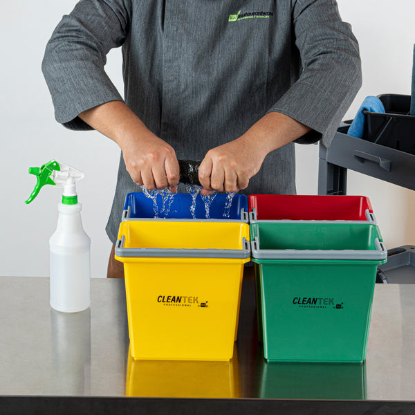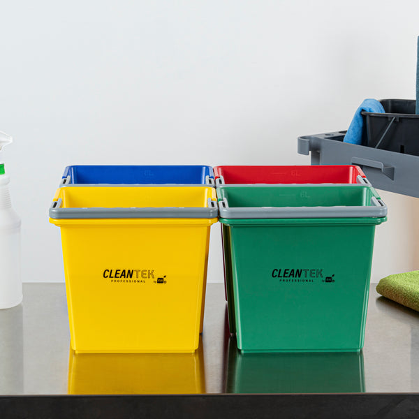 6 QT GREEN, BLUE, RED AND YELLOW CLEANING BUCKETS