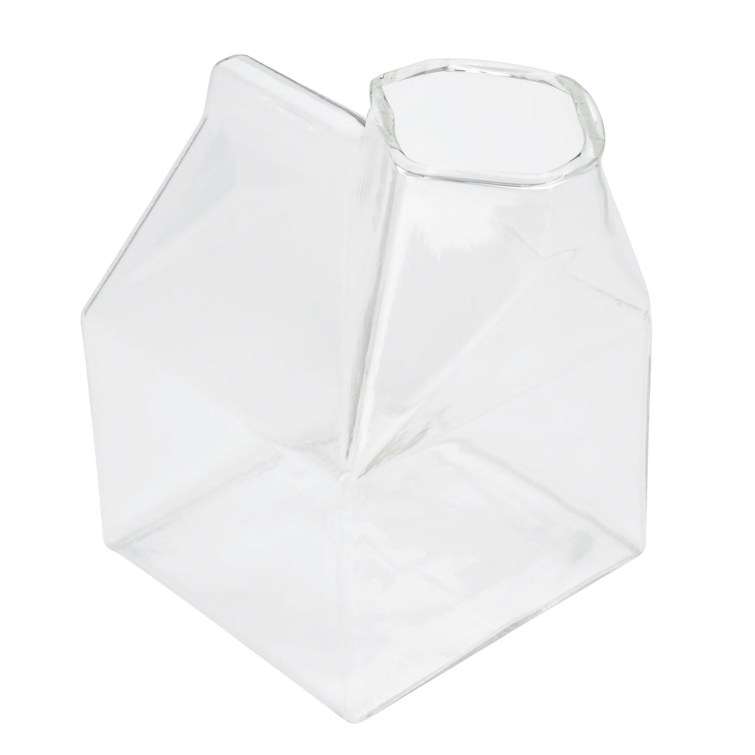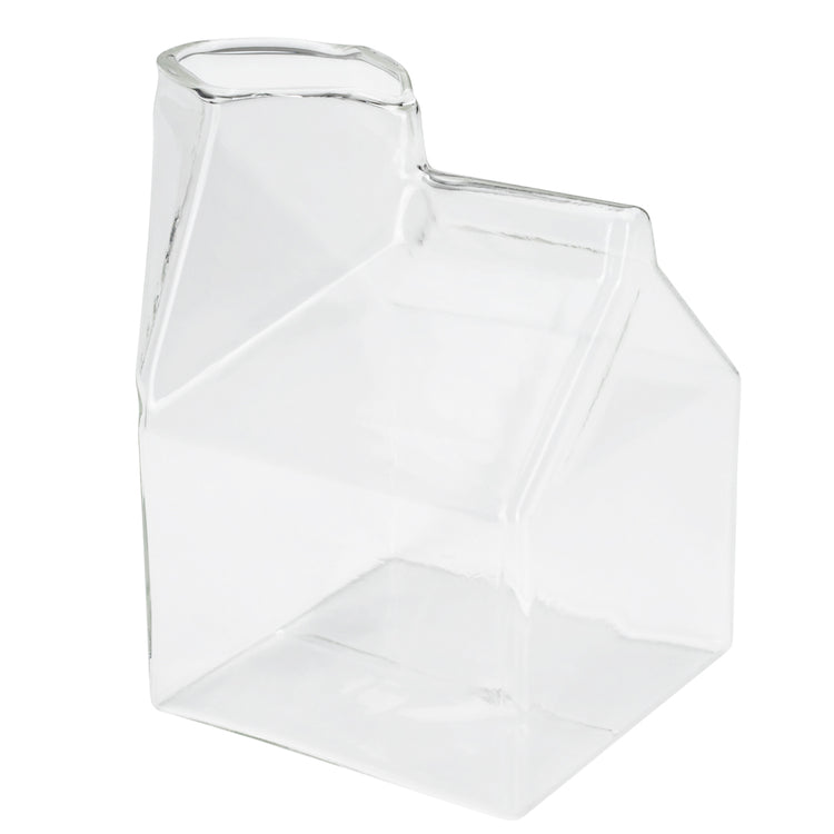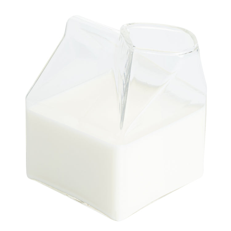 Elevate your drink service with our Vetri 12-ounce Clear Glass Milk Carton. The milk carton combines a unique glass drink container design, making it ideal for single-serve desserts and beverages. Crafted from durable clear glass, this glass milk carton is both dishwasher-safe and space-saving, ensuring efficient cleanup and optimal storage in foodservice operations. Its freezer-safe capability allows for the convenient storage of pre-prepped items, while its oven-safe construction is perfect for reheating soups and baked goods, enhancing versatility in busy kitchens. The clear glass carton design not only provides a distinctive touch but also offers a sturdy, reusable alternative to disposable drinkware, appealing to eco-conscious businesses. This glass milk carton measures 3.3 inches in length by 2.7 inches in width and 3.9 inches in height. Sold in a 1 count box.
