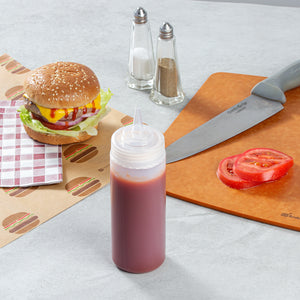 These clear condiment bottles visibly show the contents inside so you can avoid mixing up sauces. Not to mention, customers will instantly know what's inside.
