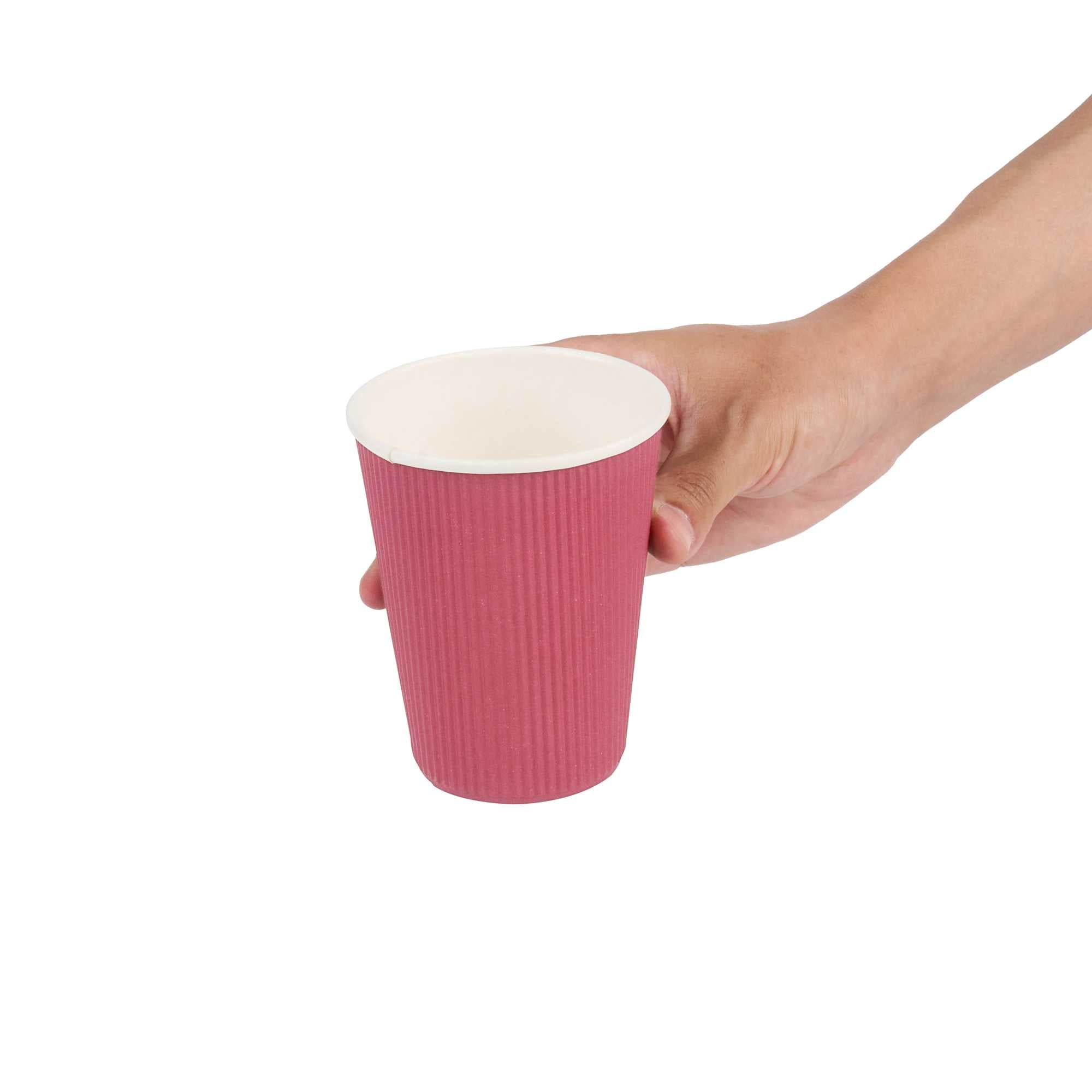 12 OZ CRIMSON PAPER COFFEE CUP - RIPPLE WALL