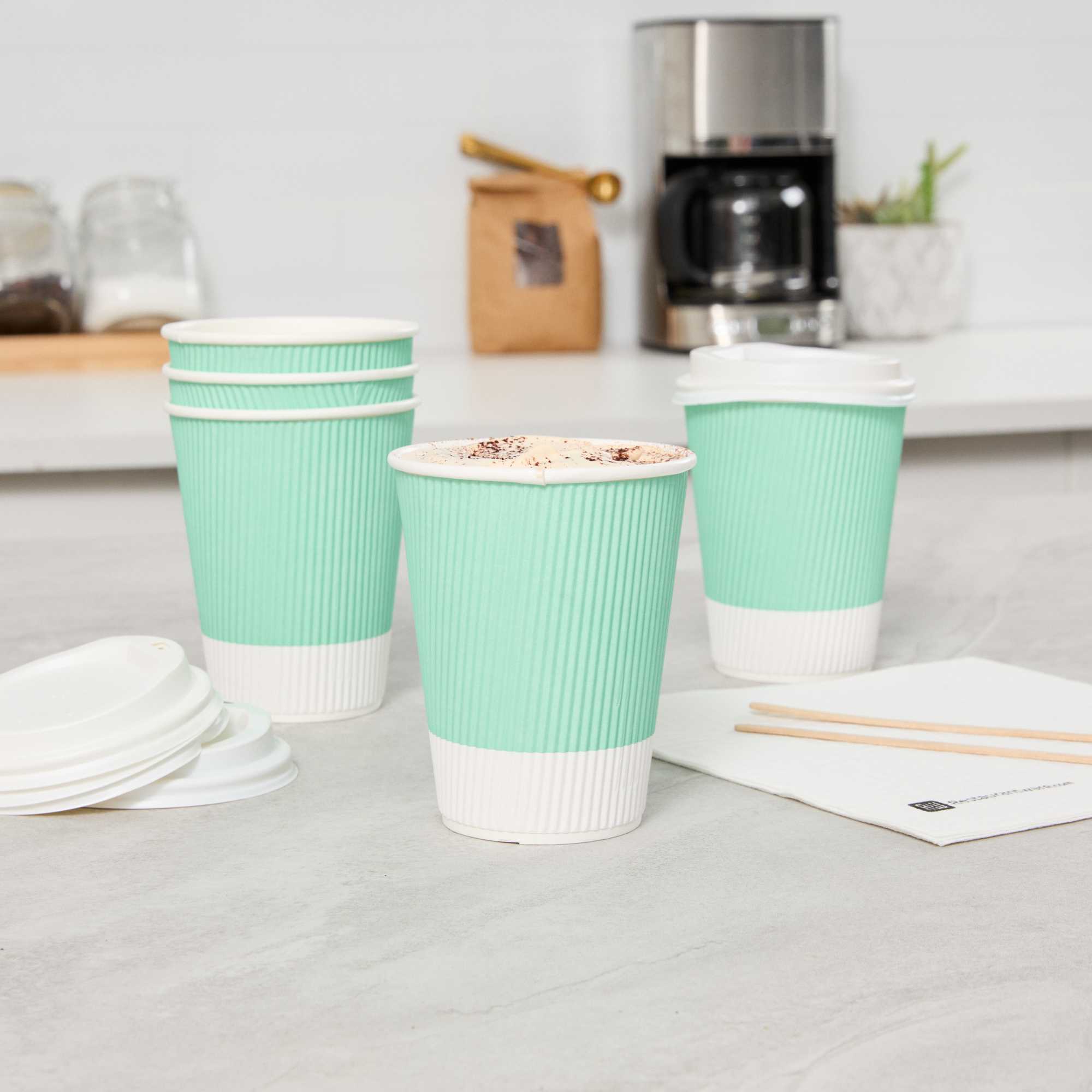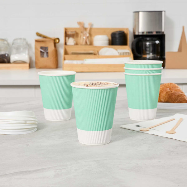 12 OZ LIGHT GREEN PAPER COFFEE CUP - RIPPLE WALL