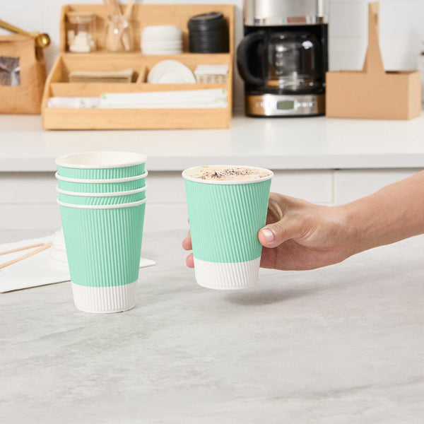 12 OZ LIGHT GREEN PAPER COFFEE CUP - RIPPLE WALL