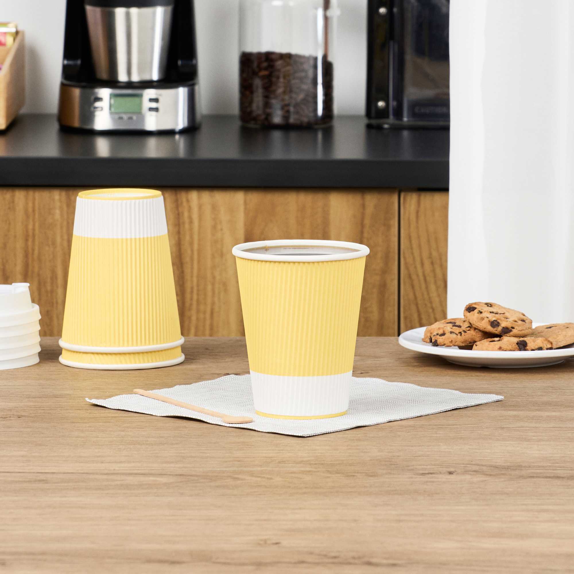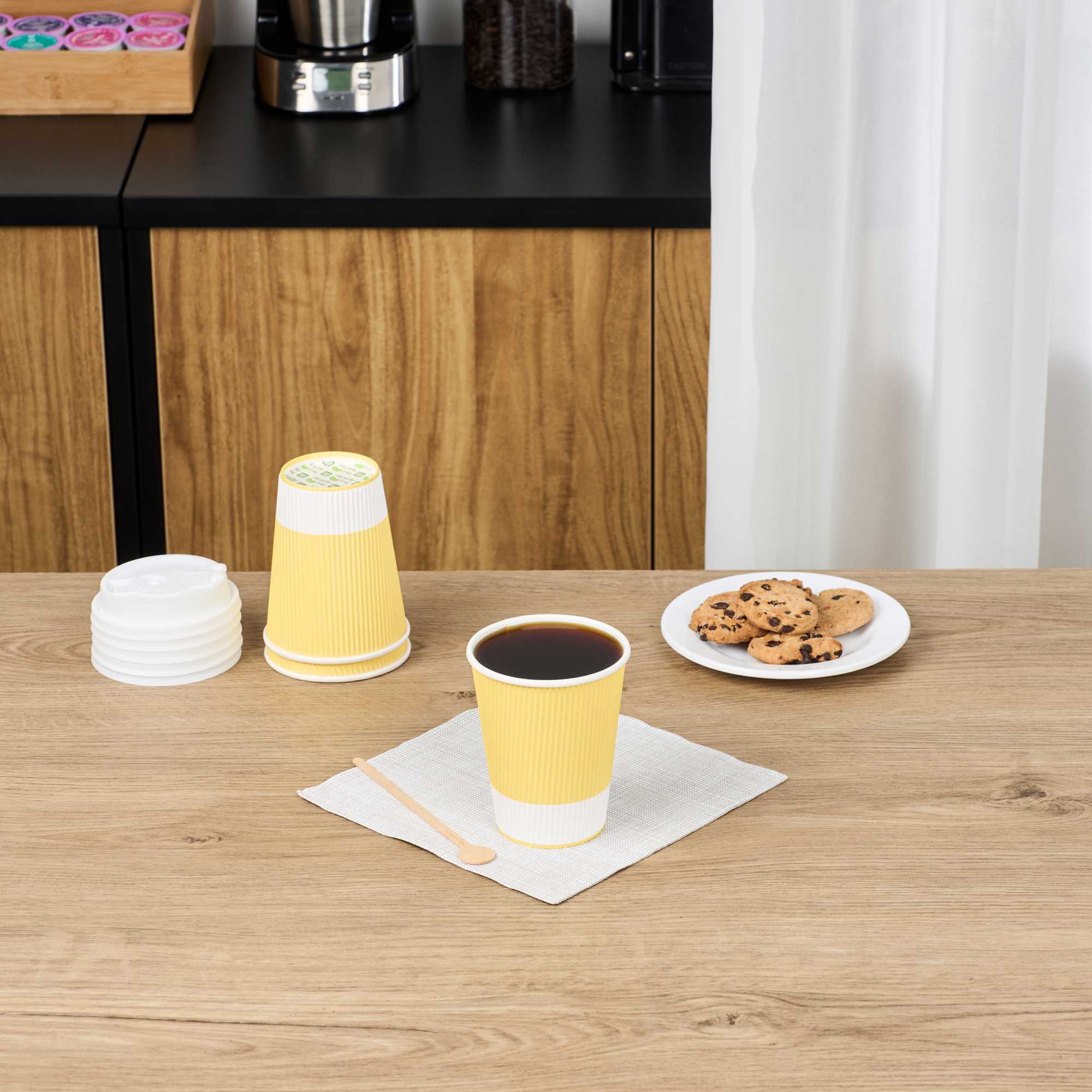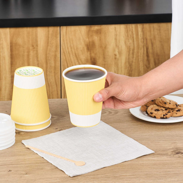 12 OZ LIGHT YELLOW PAPER COFFEE CUP - RIPPLE WALL