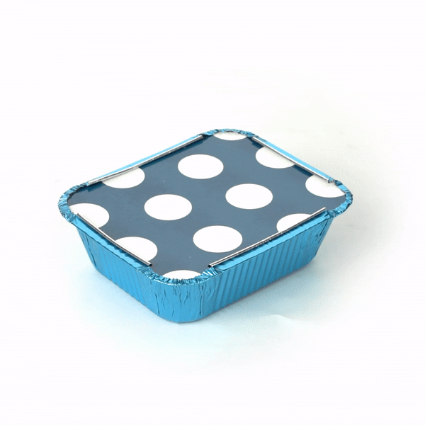 12 OZ BLUE ALUMINUM TAKE OUT CONTAINER - WITH POLKA DOT PAPER LID